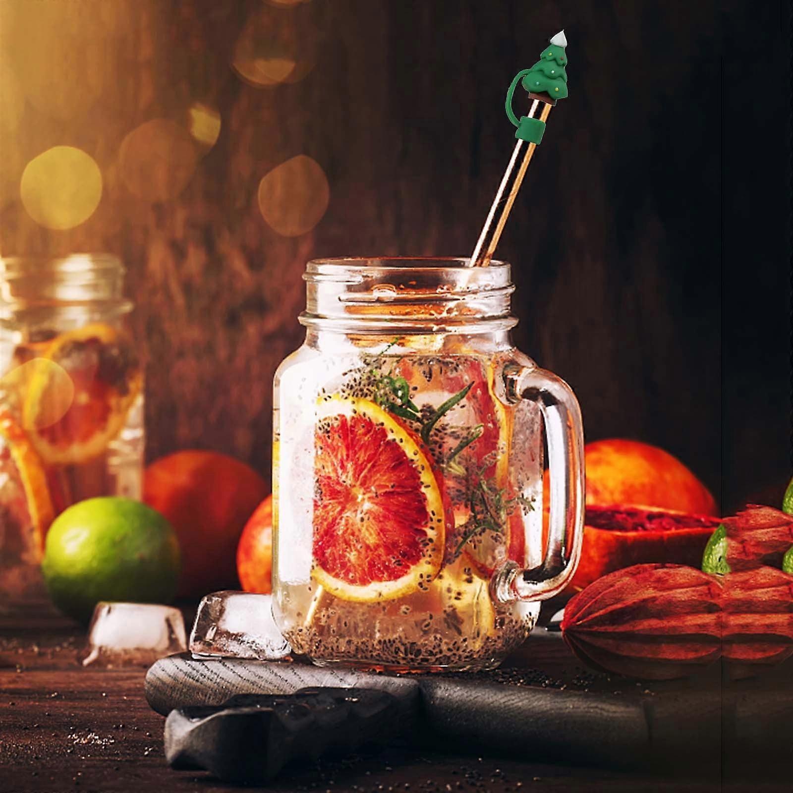 Christmas Straw Cover Caps, Compatible with 30&40 Oz Tumblers, Reusable Silicone Straw Toppers, 0.4"/10mm, Cute Shapes, Home Decoration