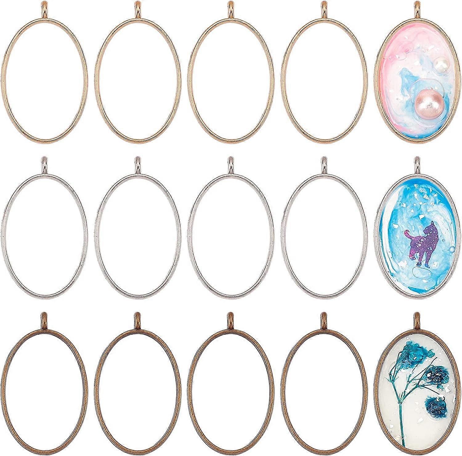 30pcs Oval Open Bezel Charms 3-Color Alloy Frame Pendants Color-Lasting Hollow Resin Frames with Loop for Resin Jewelry Making