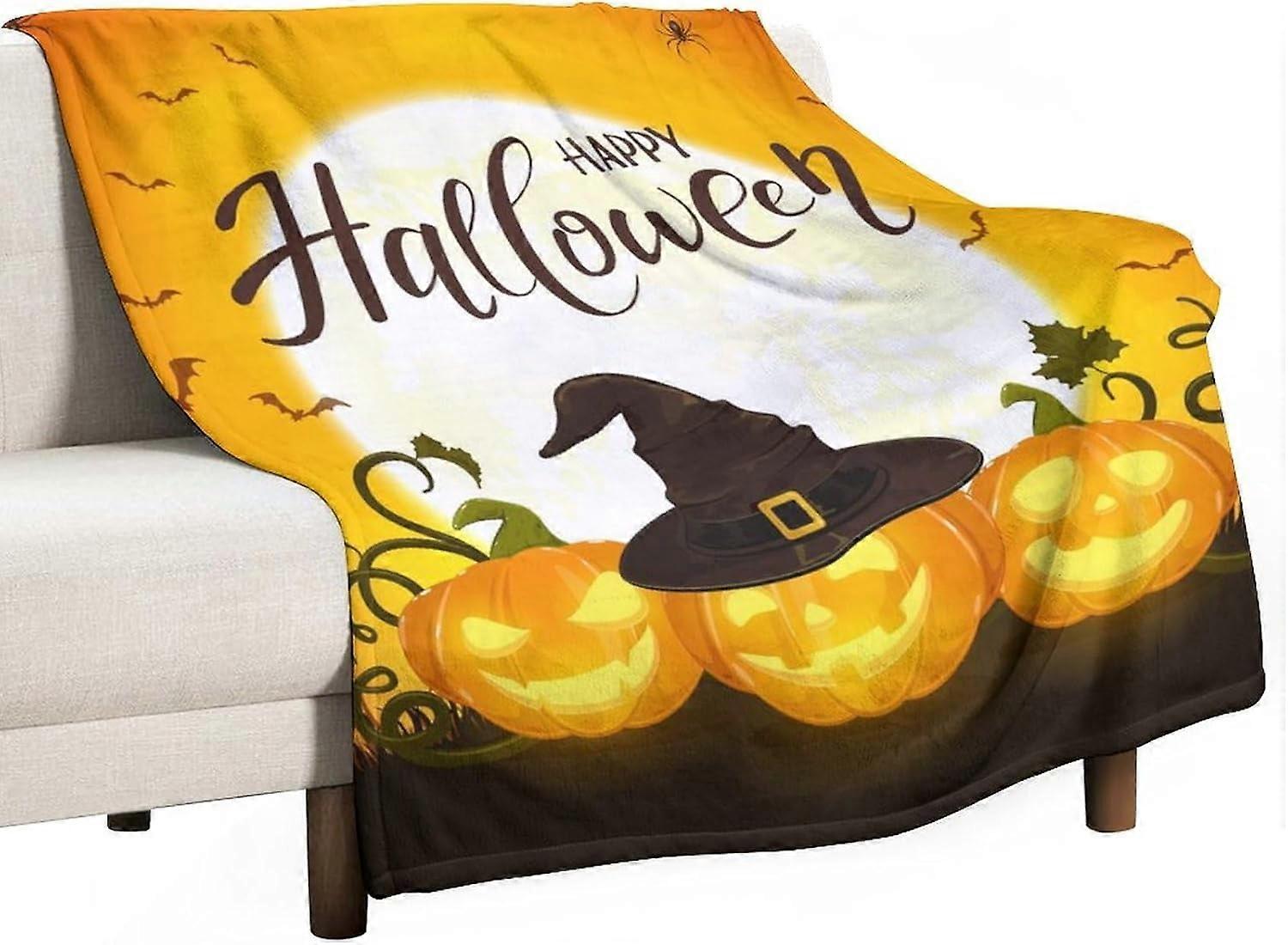 Halloween Orange Pumpkins Fleece Blanket, Jack O Lantern Soft Flannel Cozy Blanket for Adults, Washable Lightweight Fuzzy Gift 50x60in
