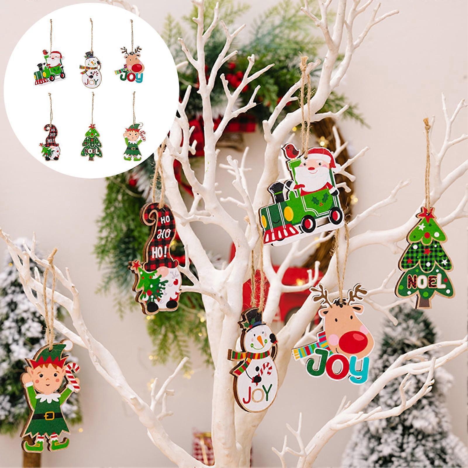 SUSUchens Christmas Wooden Hanging Decoration Santa Claus Reindeer Snowman Gnome Elf Xmas Tree Ornament Party Supplies Gift Style F