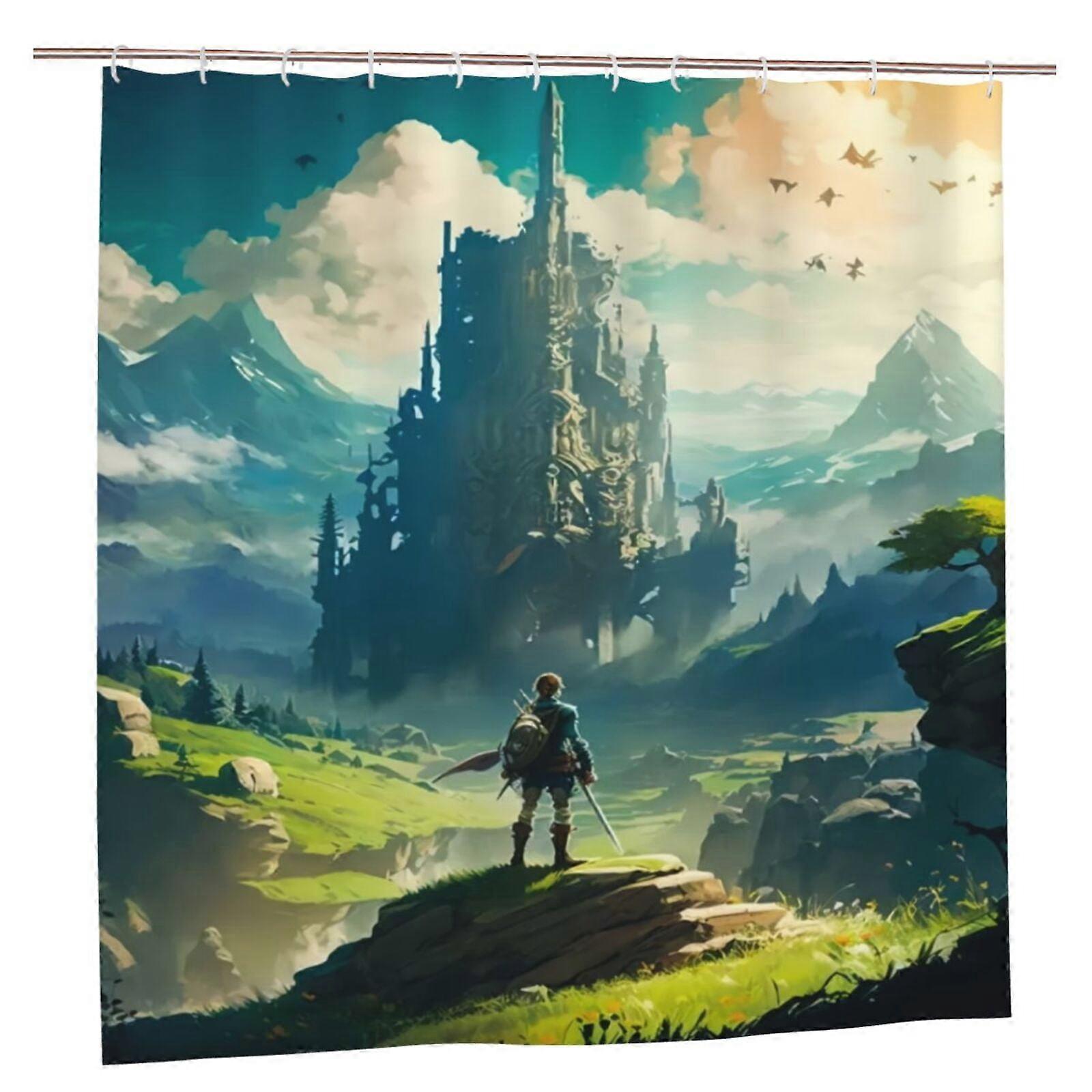 The Legend of Zelda Shower Curtain 72x72in, Waterproof Polyester, Quick-Drying, Weighted Hem, Machine Washable with 12 Hooks