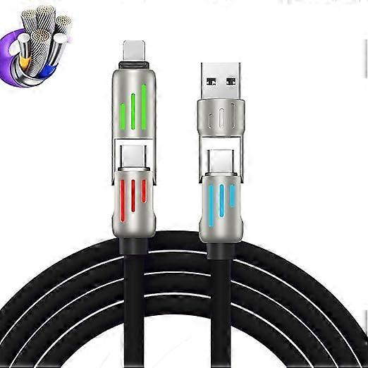 240W 4-in-1 USB C Cable, compatible with multi-device fast charging, breathing light, universal 240w charging cable (Black)