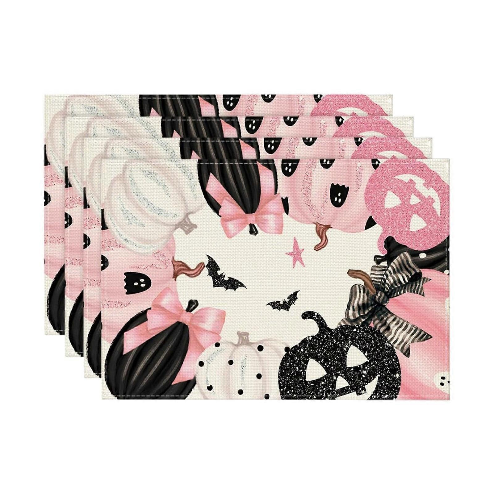 XIUH Halloween Decor Plaid Bat Truck Halloween Placemats Set Of 4 Seasonal Table Mats For Party Kitchen Dining Decoration Halloween Gift Clearance!