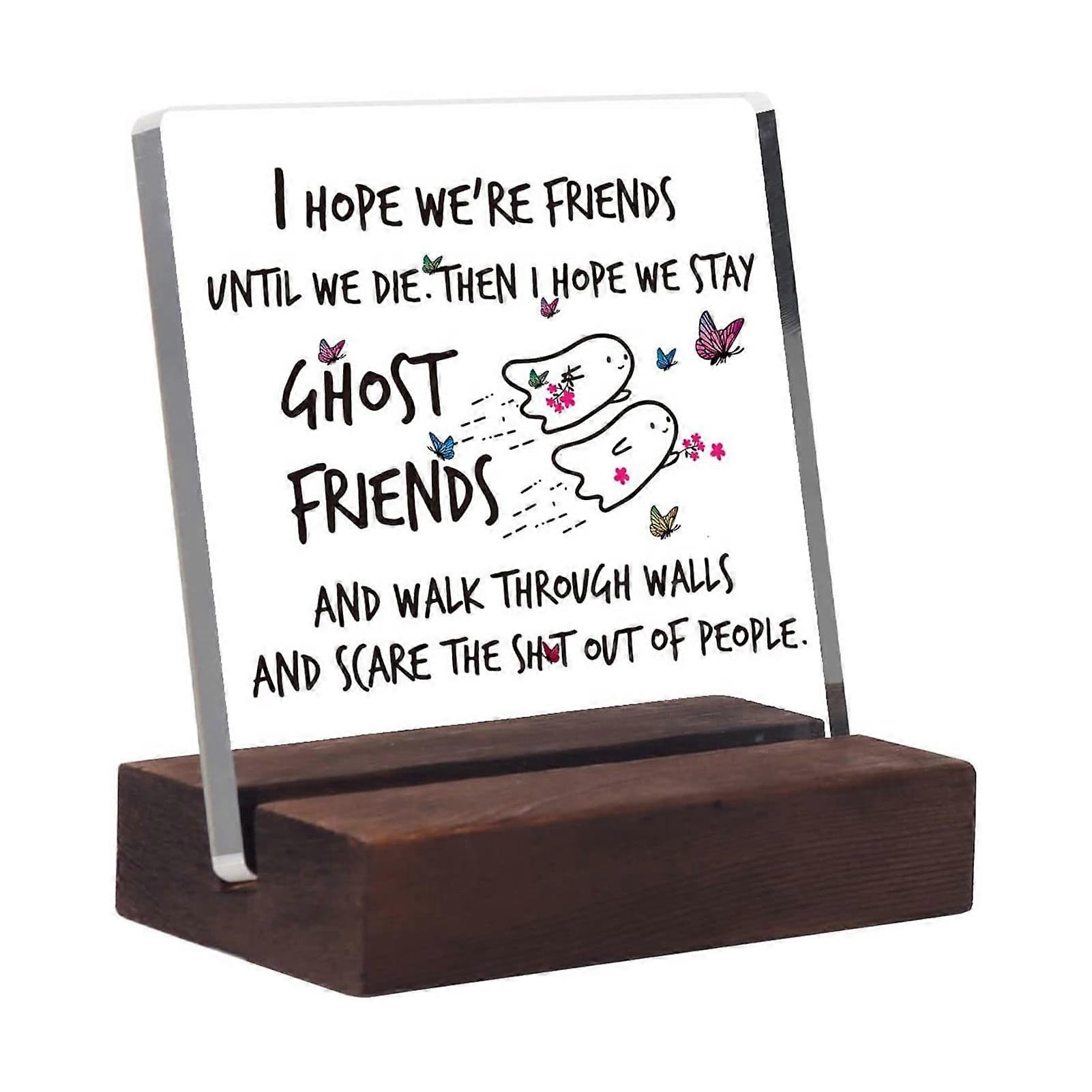 Clear Acrylic Desk Sign with Wood Stand, Cartoon Butterfly Pattern, Positive Quote Plaque for Home Office Decor