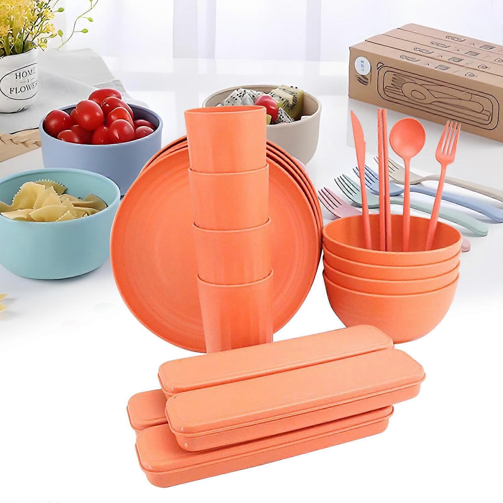 Staron 32pc Bowl Cup Spoon Knife Clearance (Orange), 32pc Bowl Cup Spoon Knife Fork Chopsticks Tableware Portable Home Going Out Tableware Set
