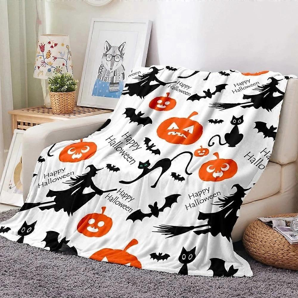 Halloween Throw Blanket Ghosts Bat Pumpkin Blanket Cozy Flannel Halloween Decoration for Party Sofa Bed Living Room 30*40 A-3