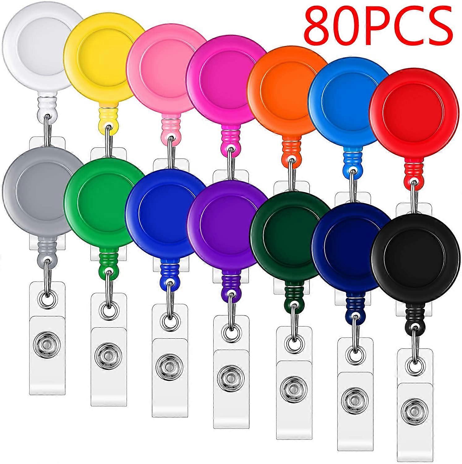OBOSOE 80 Pack Retractable Badge Reels with Metal Belt Clip, Compatible with ID Cards, Keys, Keychains - Multicolor
