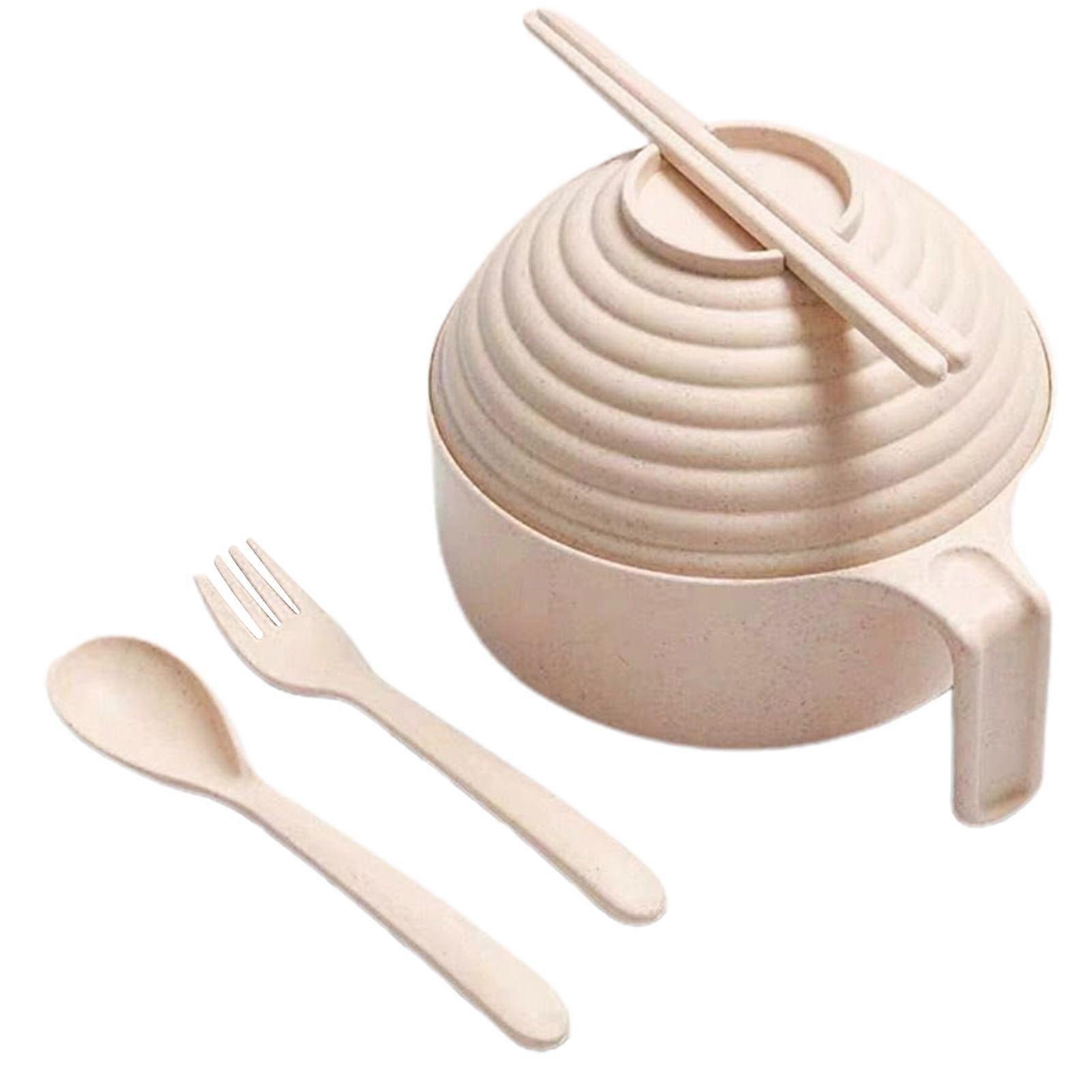Hesroicy 1 Set Multi-Use Noodle Bowl - Food Grade Heat-Resistant with Lid and Tableware - Ideal for Kitchen and Student Dormitory Use