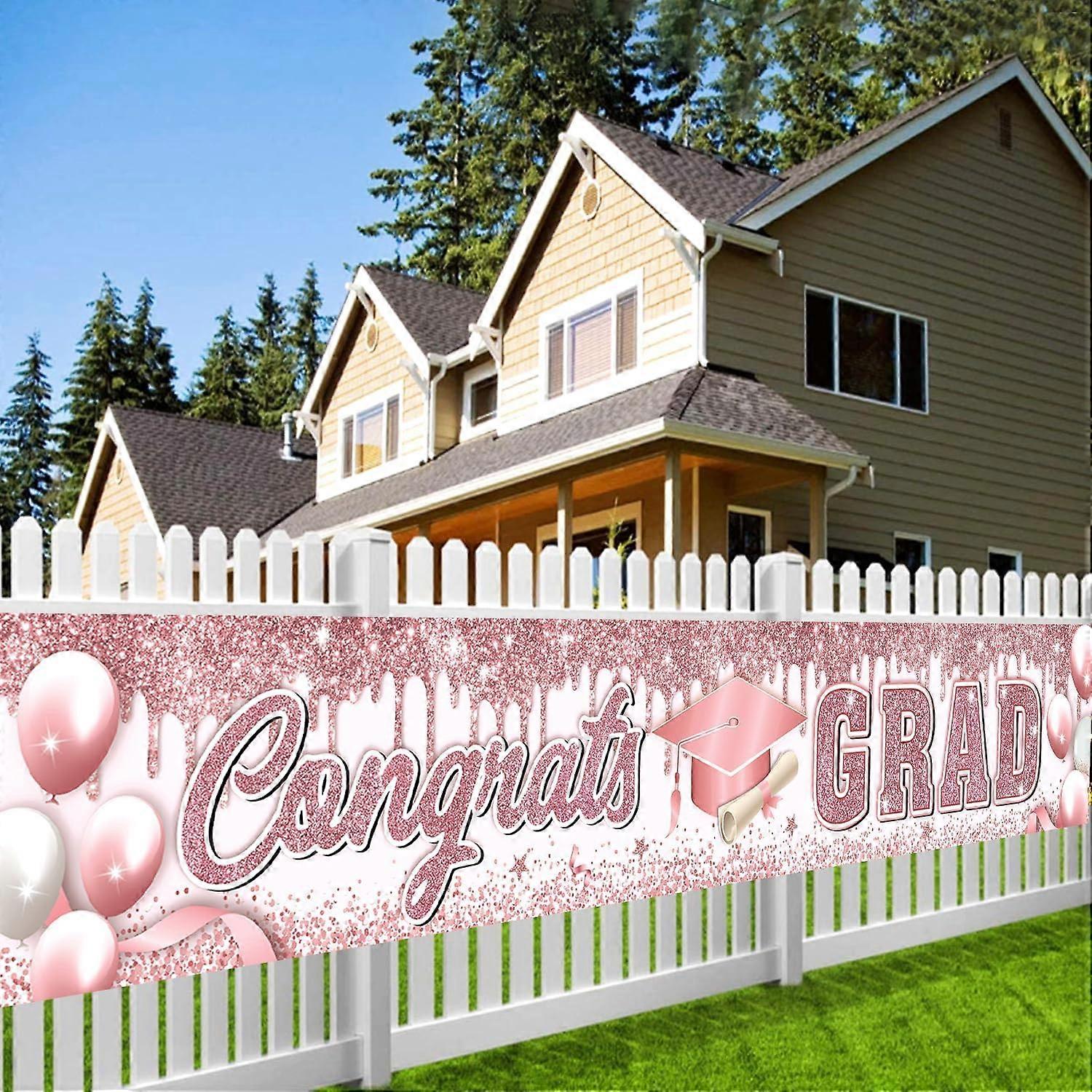 Pink Graduation Decorations 2024, XXXLarge 118*20in Garden Banner, Congrats Grad Yard Sign, Party Decorations