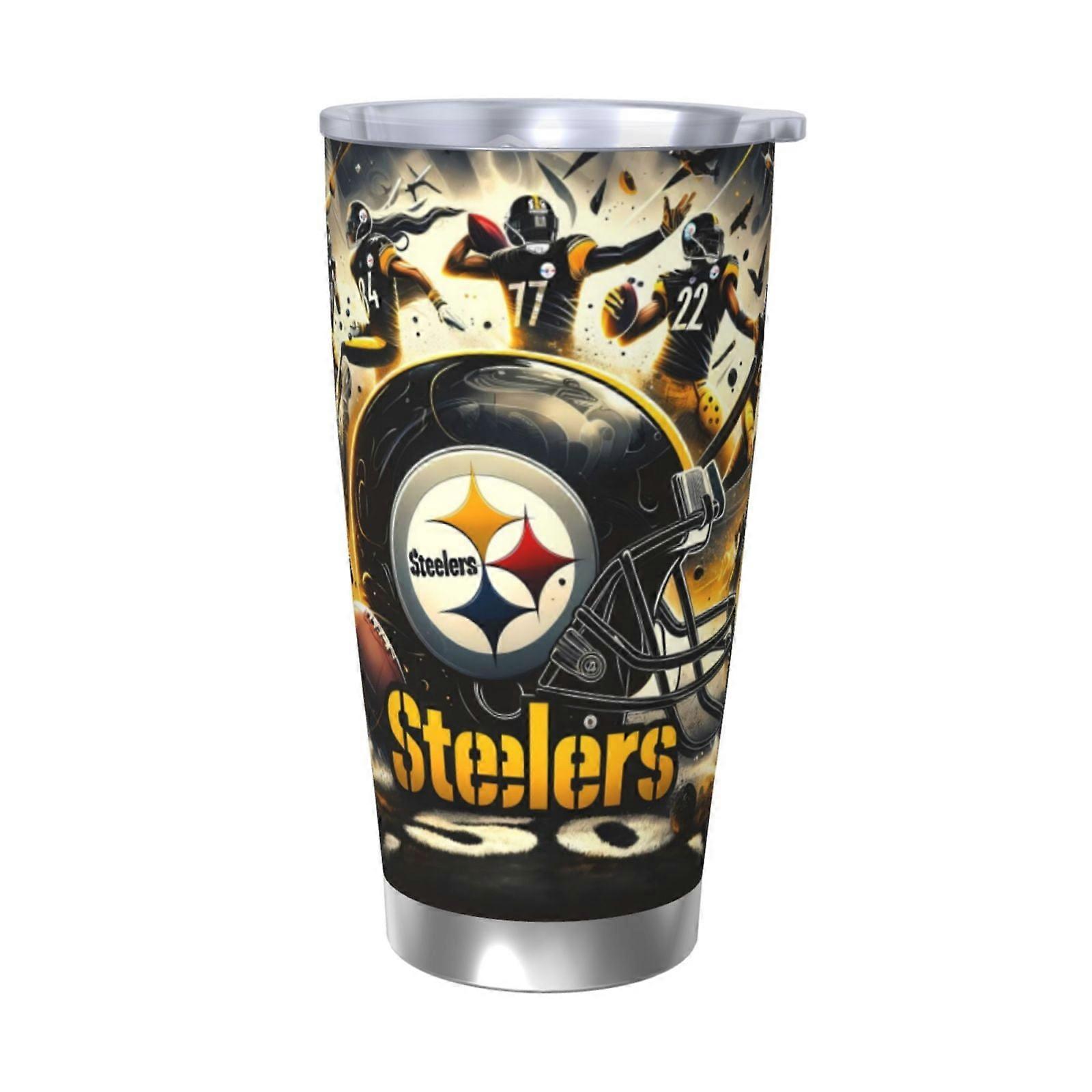 Steelers Football Team Theme 304 Stainless Steel Thermos Cup with Lid and Straw, 20oz, Compatible with Car Cup, Hot & Cold Drinks