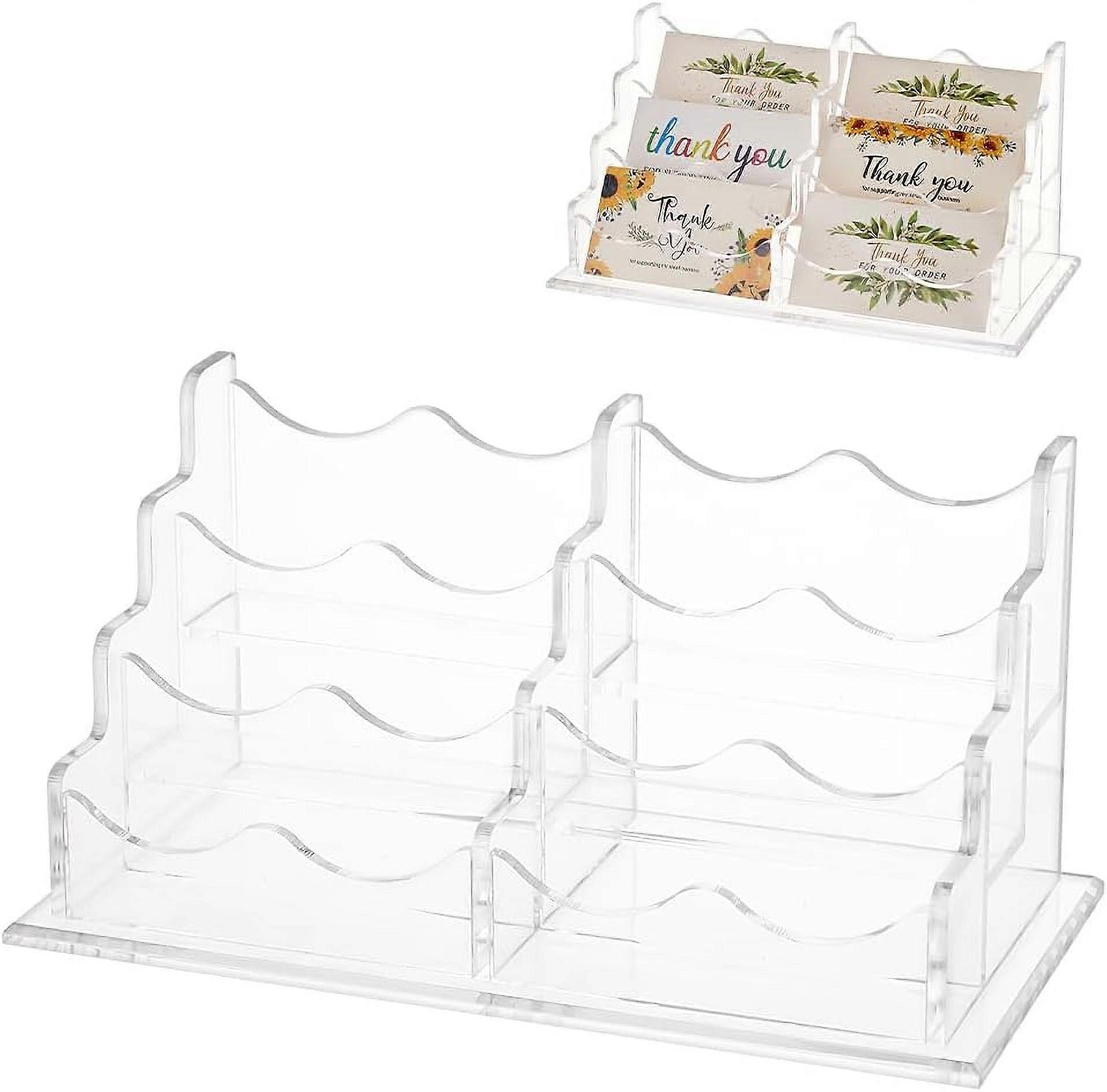 Clear Acrylic 6-Pocket 2-Tier Business Card Holder, 8.1x4.3x4.3 inch Vertical Desktop Display Stand for Office Home Desk