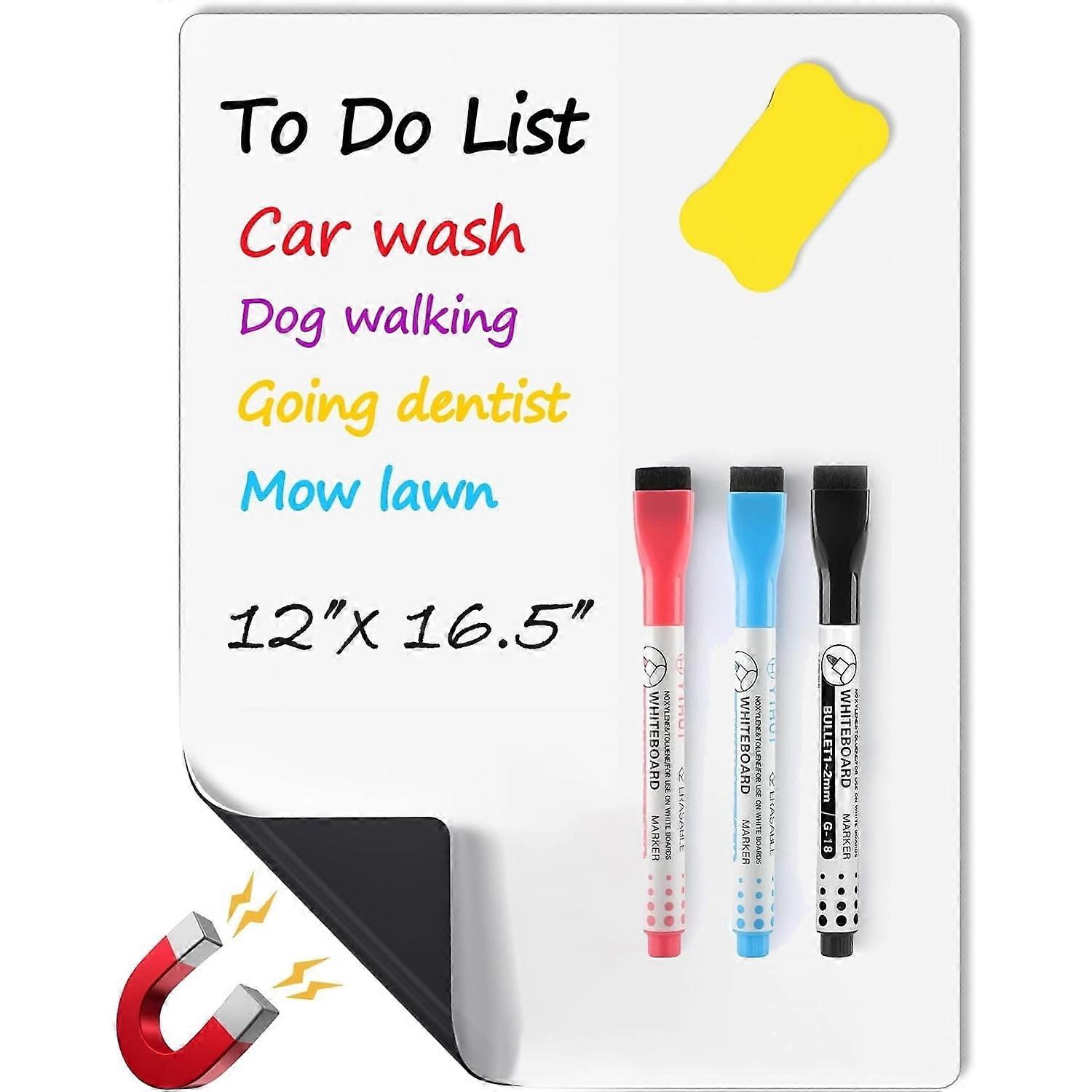 Magnetic Dry Erase Board for Refrigerator, Fridge Whiteboard for Kitchen, Stain Resistant Organizer with 1 Eraser, 3 Markers (12 x 16.5")
