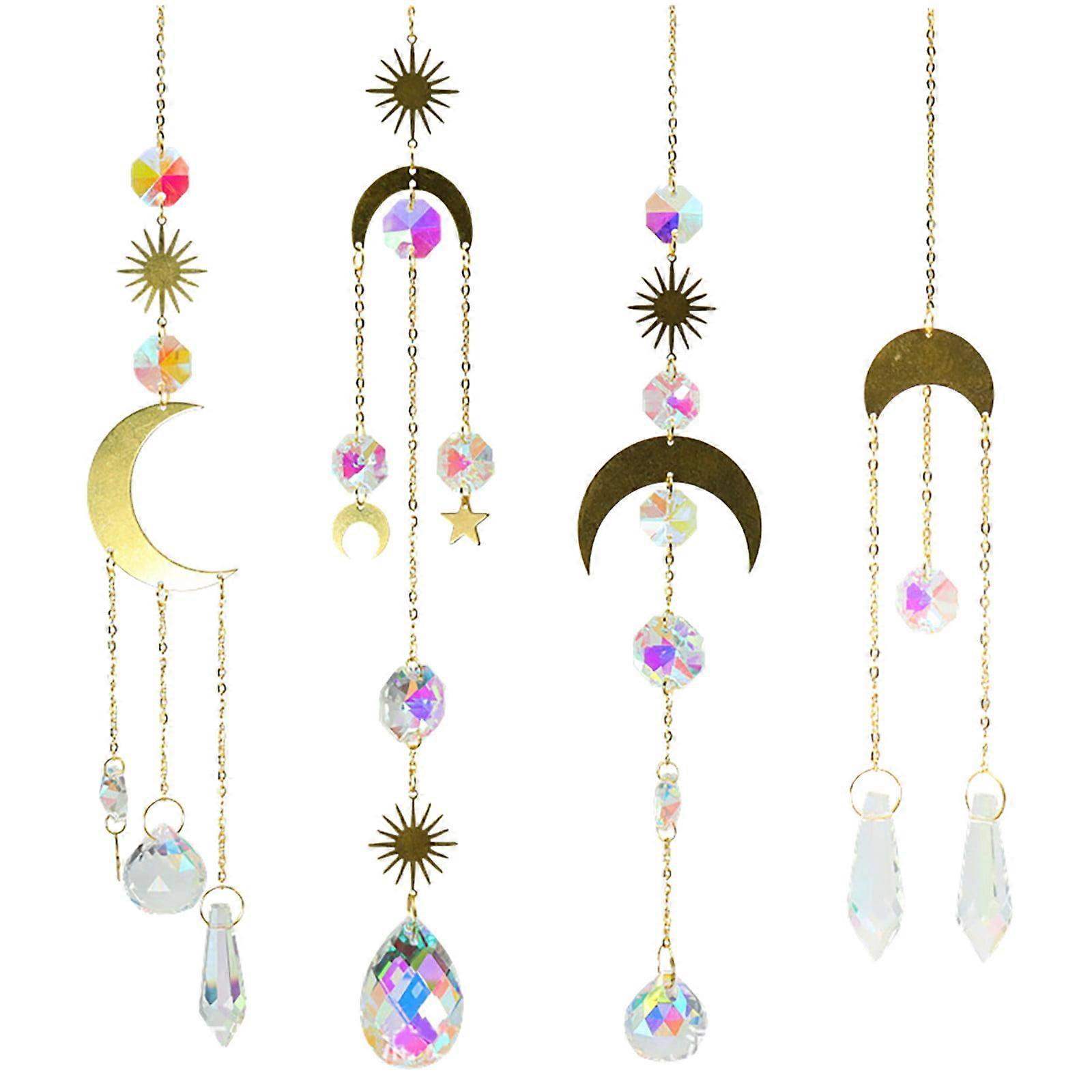 Poaug Wind Chimes 4-Piece Set - Rainbow Crystal Pendants, Compatible with Garden & Indoor Decor, Outdoor Wind Chimes Clearance