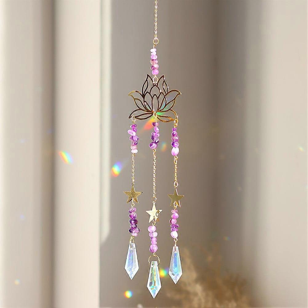 Colorful lotus crystal wind chime hanging pendant for home garden courtyard
