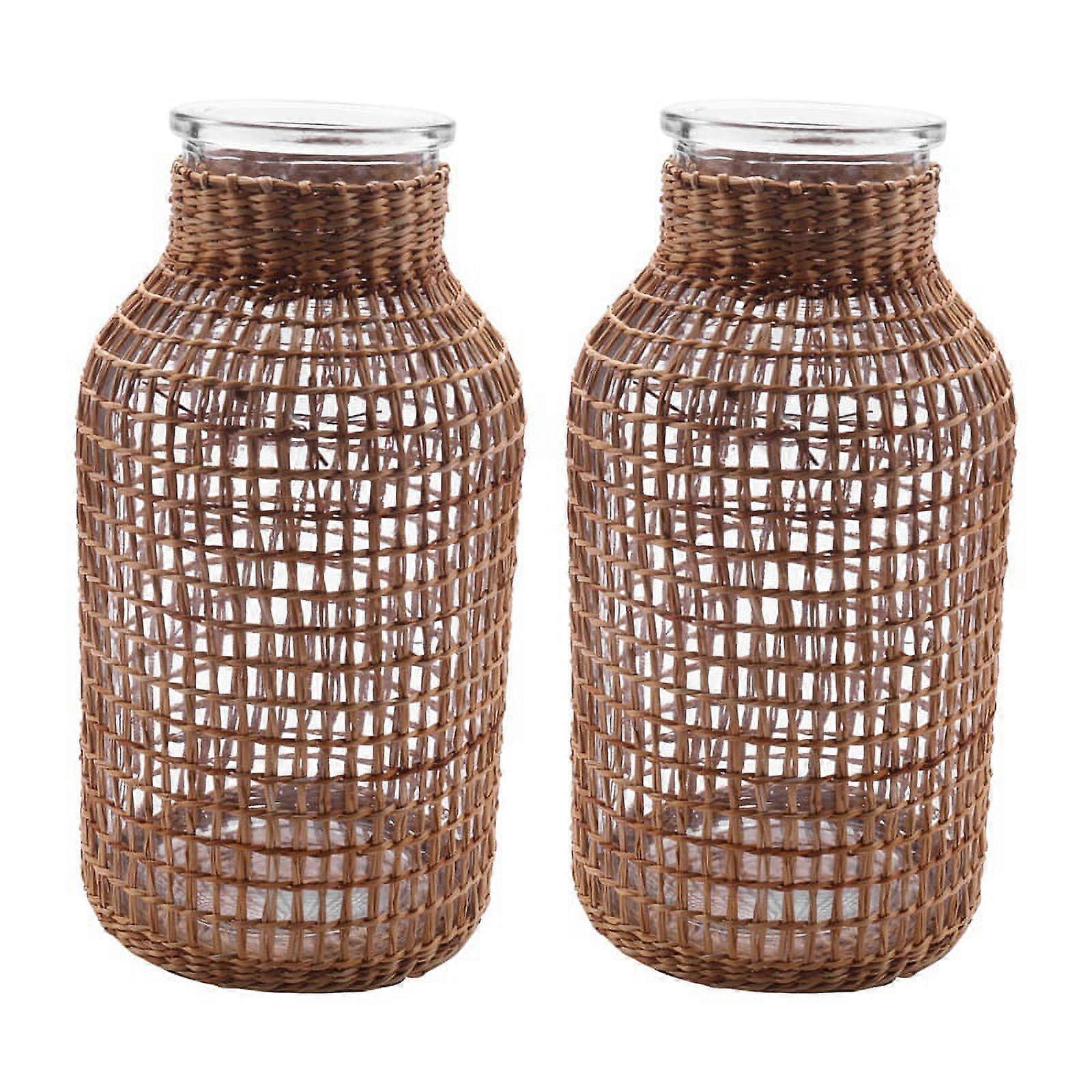 2X Straw Glass Flower Vase Japanese Flower Pot in the Nordic Contracted Flower Basket to -L