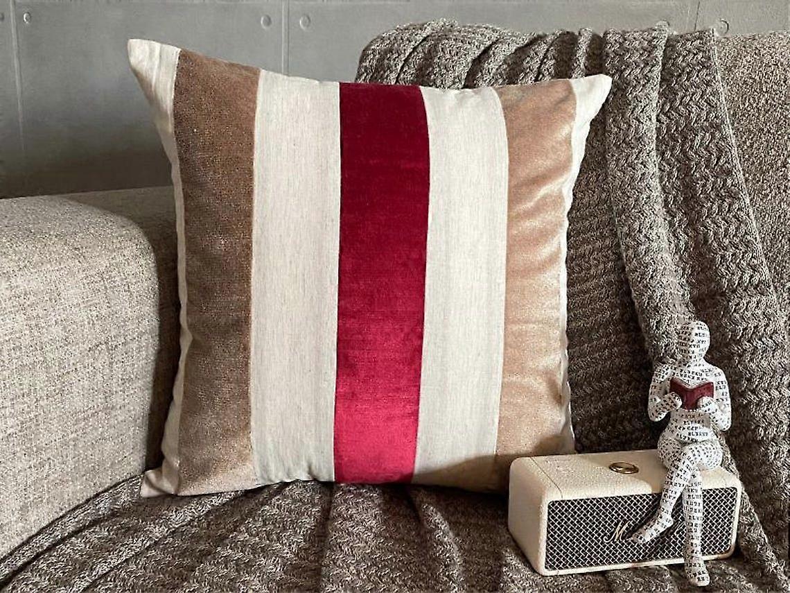 HomeCentric Pillow Cover, Berry Pack of 2, 22x22 inch, Velvet Patchwork Striped Throw Pillows for Couch, Modern Style