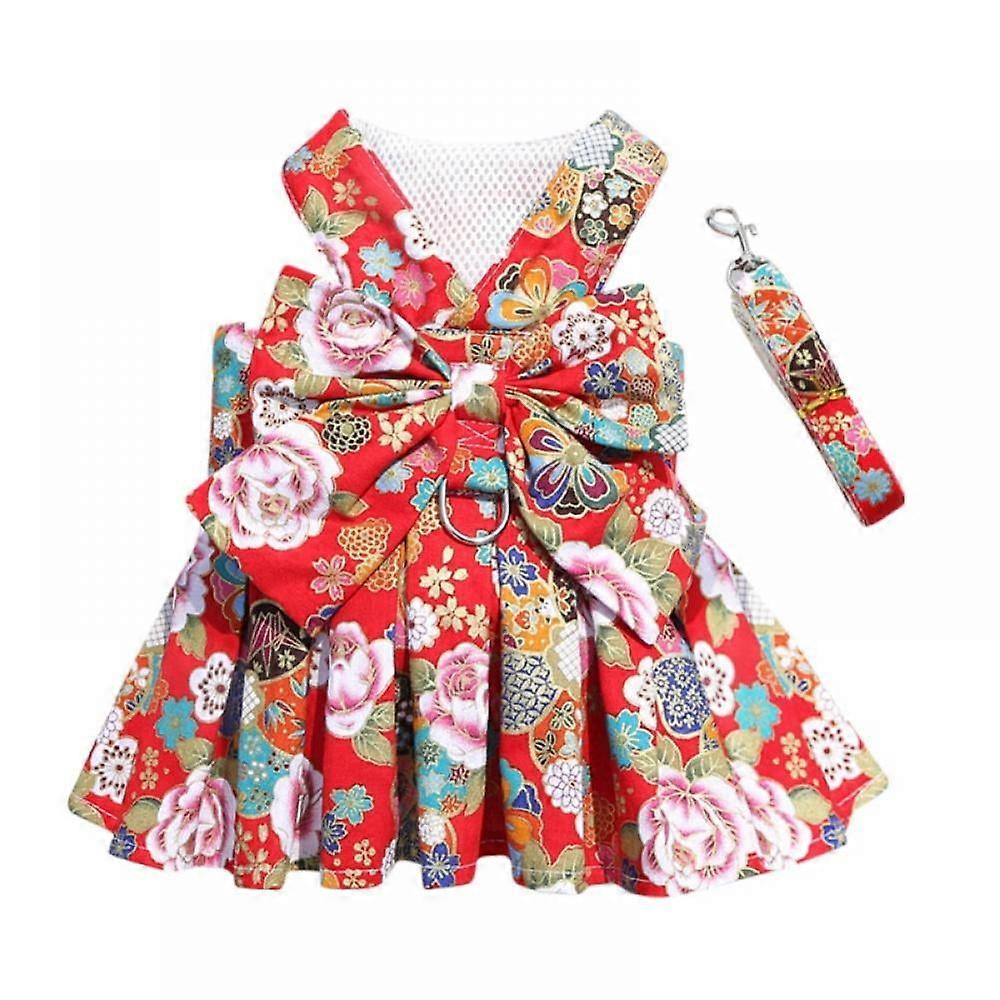 Puppy Dog Harness with Leash Set,Thin Cute Floral Princess Bowknot Skirt for Small Dogs Cats for Spring Summer 2XL-S