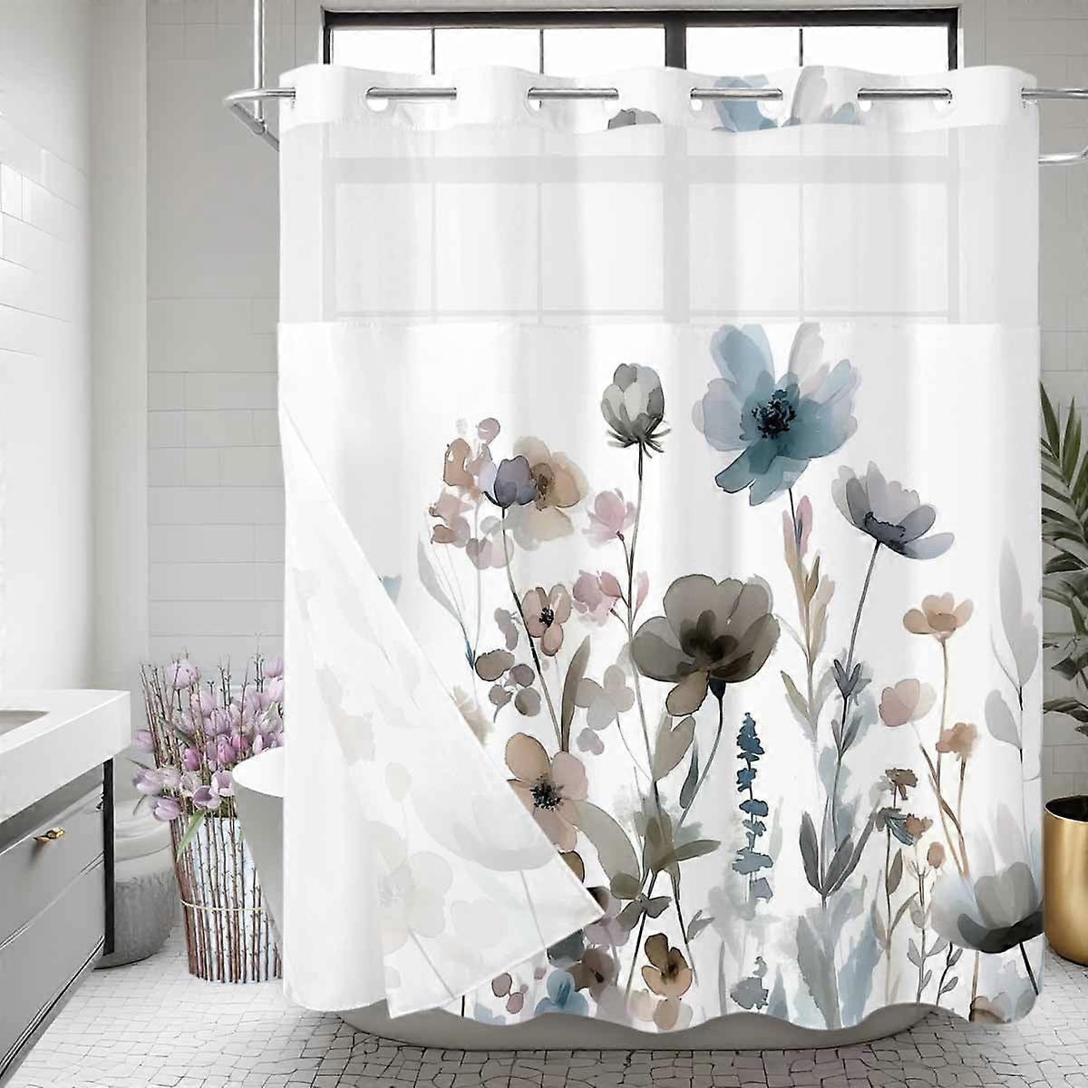 Watercolor Flower Shower Curtain,No Hooks Required with Snap in Liner,Bathroom Curtain,72"X72"