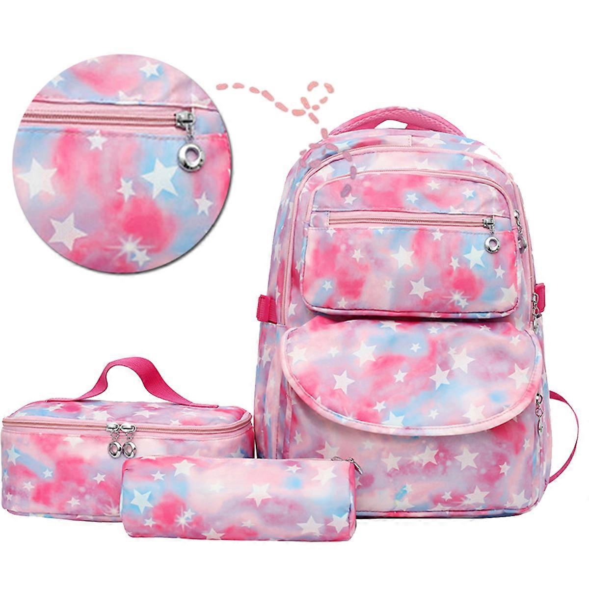 3Pcs School Bags Bookbag Pencil case Women School Set with Lunch bag Pencil Case-Pink