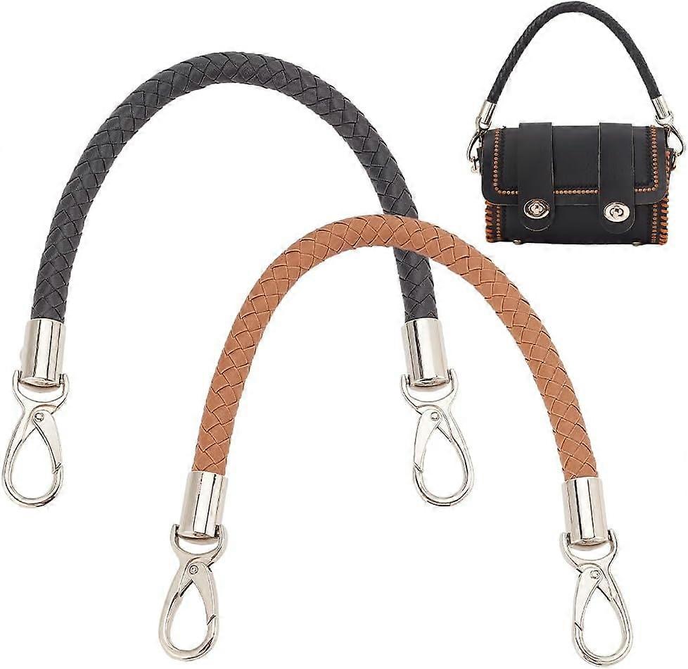 2pcs Braided Purse Straps 16" PU Leather Handbag Handles with Silver Lobster Clasp, Compatible with DIY Underarm/Shoulder Bags