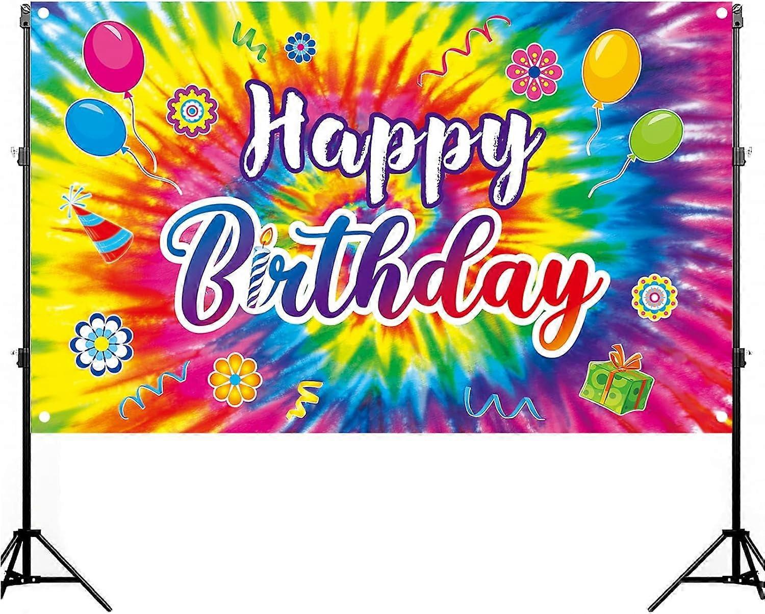 7x5ft Tie Dye Birthday Backdrop, Rainbow Banner for Hippie Party Decor, Compatible with 60's 70's Theme