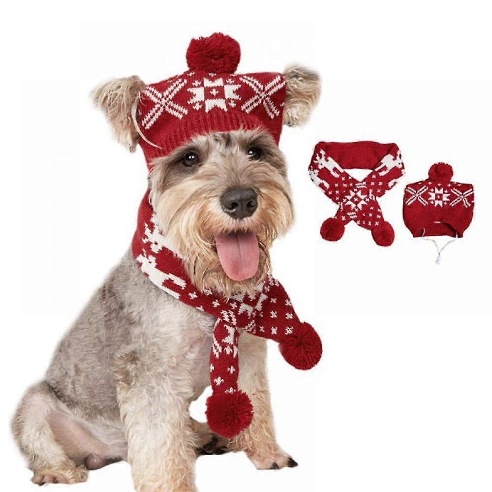 2 Pieces Christmas Pet Dog Santa Hat Pet Santa Scarf for Christmas Pet Dogs Cats Dressing Up Supplies