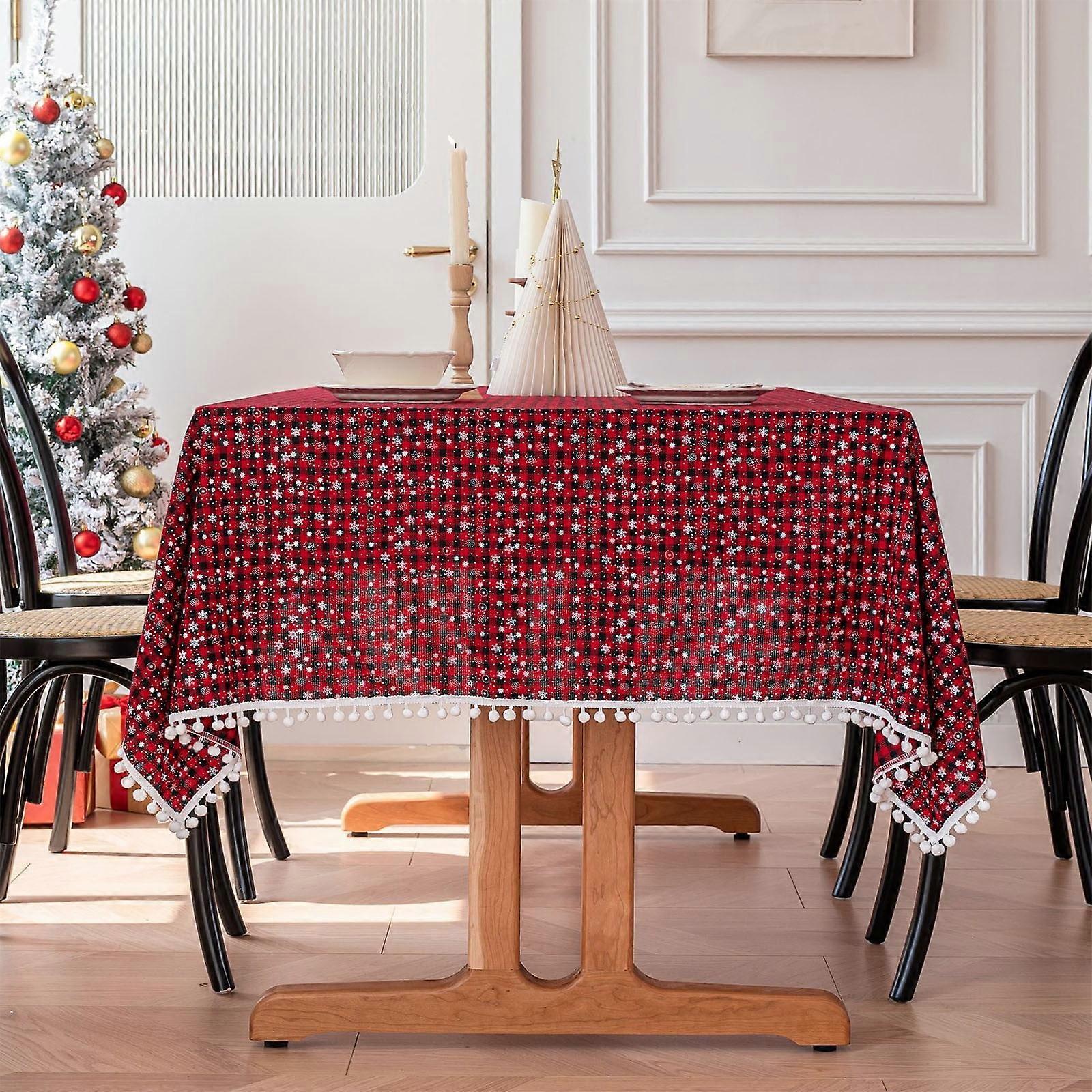 YANHAIGONG Christmas Tablecloth, Plastic Snowflake Plaid Printed Table Cover for Coffee Table, Dresser - Compatible with Holiday Decor