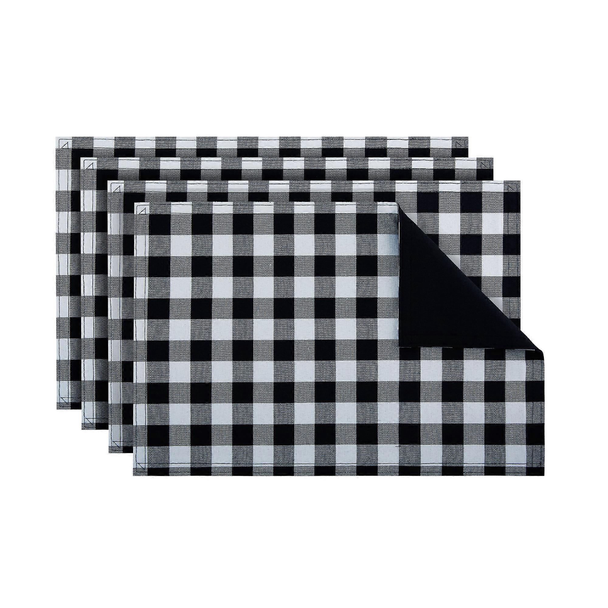 Achim Buffalo Check Polyester, Cotton Reversible Placemat - Black, White - Set of Four