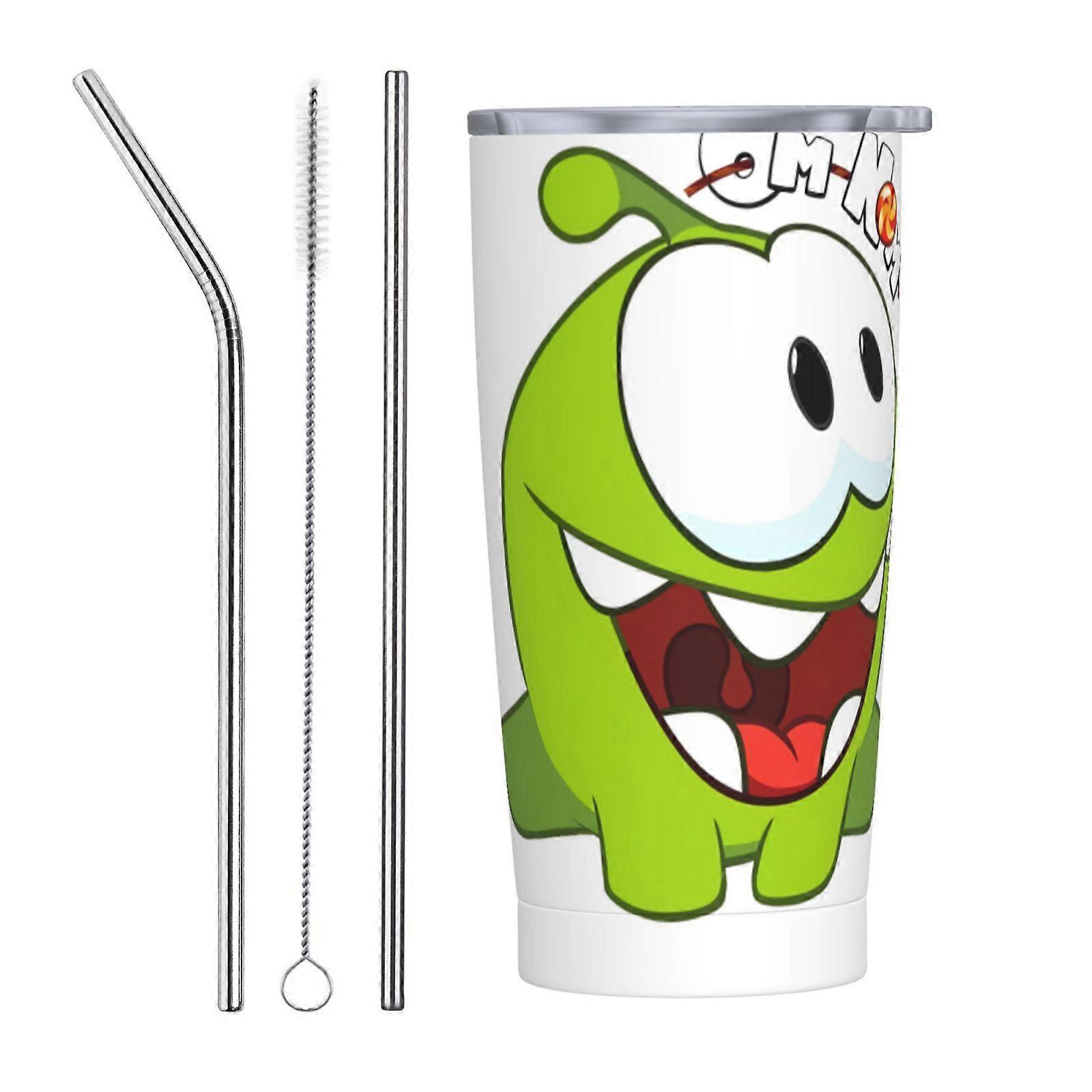 Om Nom 20oz Tumbler with Lid and Straw, Insulated Coffee Cup compatible with car cup holders, Stainless Steel Mug for Work, Home, Outdoor