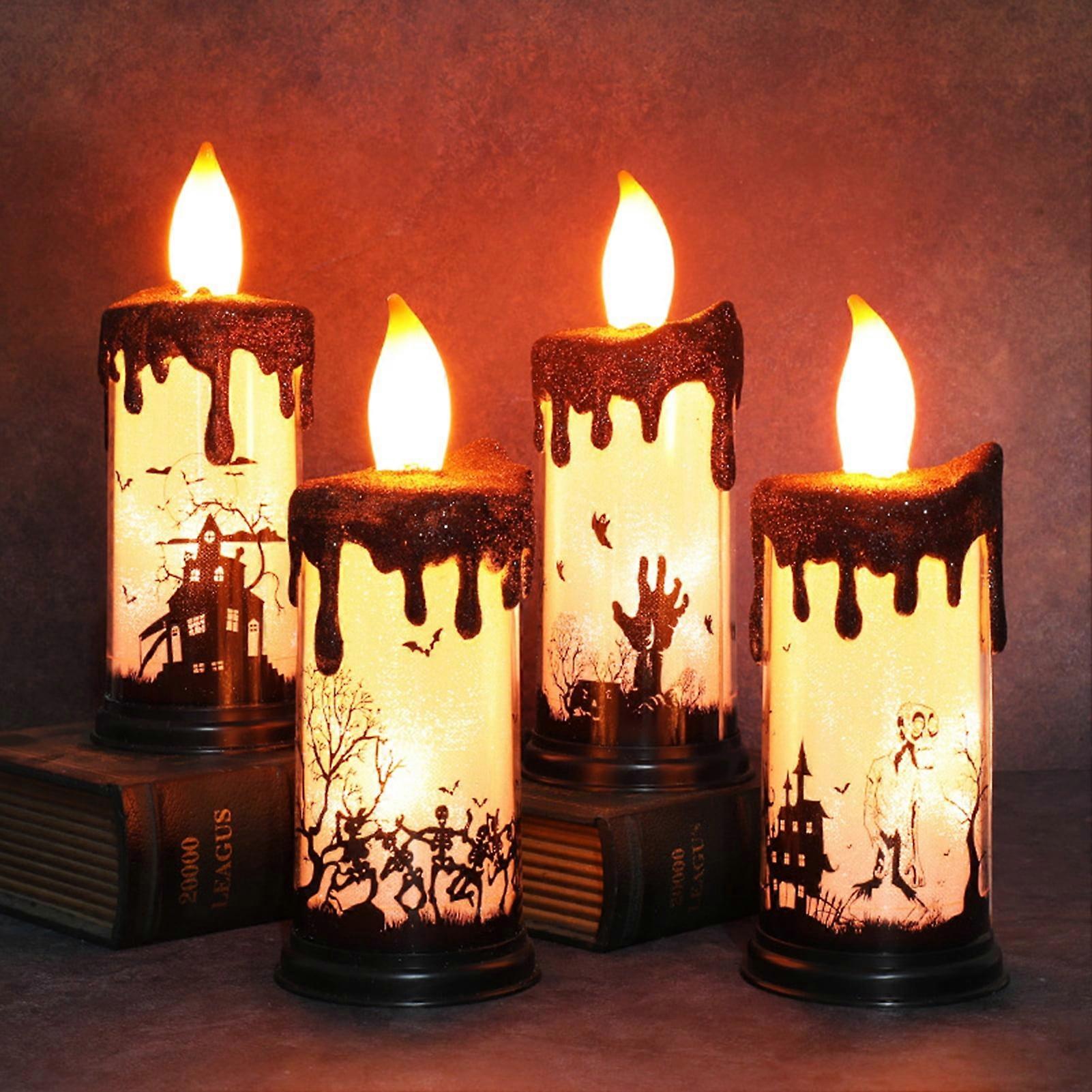 SUSUchens Electric LED Candle, Battery Operated, Glowing, Safe Halloween Ornament with Ghost Hand & Skeleton, Waterproof Party Prop - Compatible with
