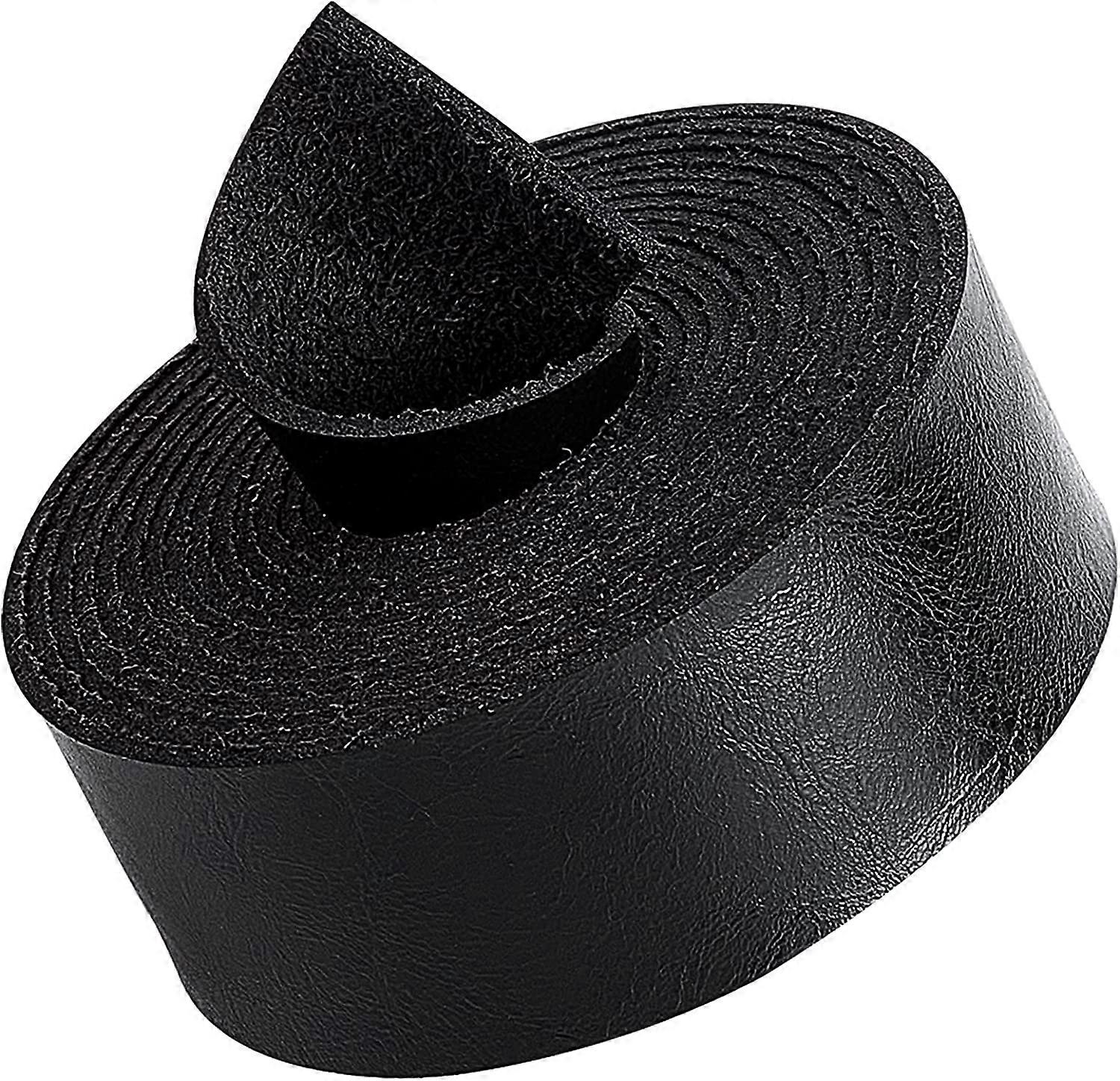 Black Leather Strap 1" x 79", Lychee Pattern, Flat Cord for DIY Crafts, Clothing, Jewelry, Bag Handles, Furniture Wrapping
