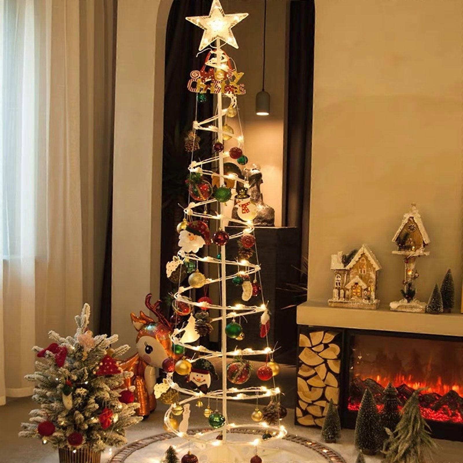Christmas Deals: LED Lights Iron Metal Foldable Tree with Balls, Compatible with Gnobogi Home Party Decor, Clearance