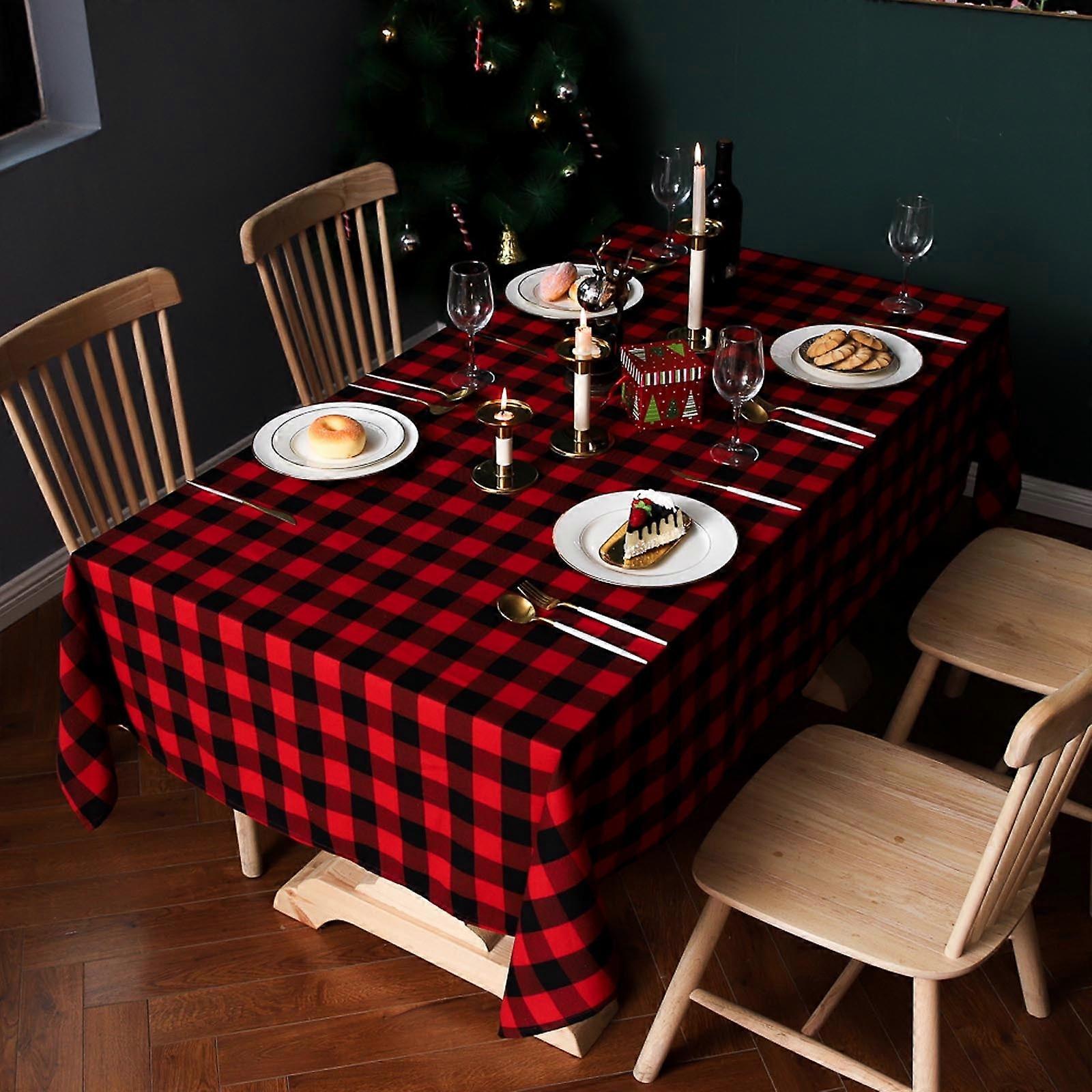 Tarmeek Buffalo Plaid Christmas Tablecloth Red & Black, Compatible with Rectangle Tables, for Indoor Outdoor Dining Room Home Decor