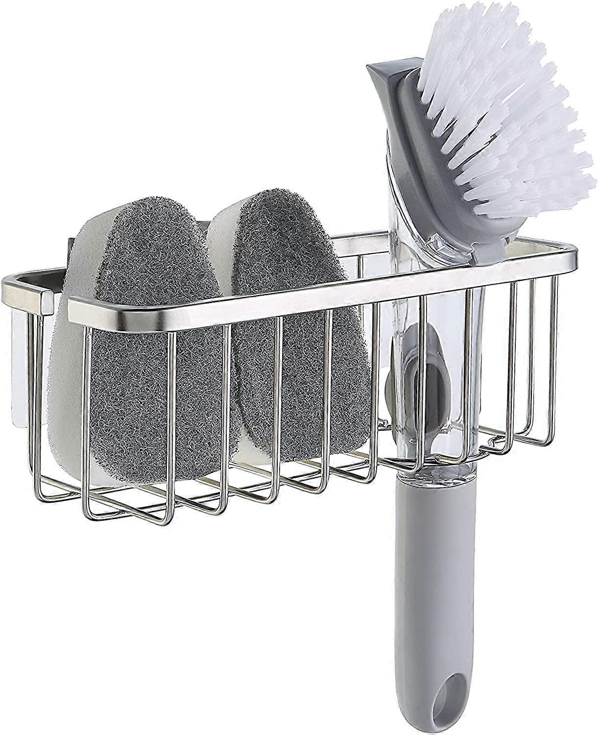Kitchen Sink Suction Holder for Sponges, Scrubbers, Soap, 304 Stainless Steel (Brushed, 7.4x3.3x2.75in) - NOT Includes Sponge & Brush