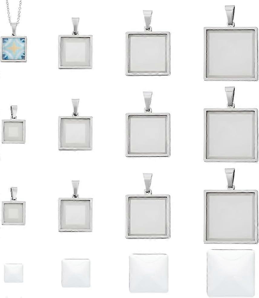 12 Sets 4 Sizes Stainless Steel DIY Blank Cabochon Settings with Glass, 10/15/20/25mm, for Jewelry Making