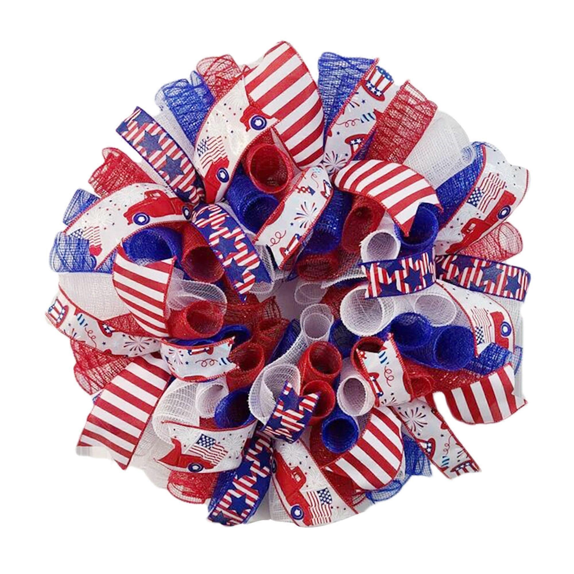 Memorial Day Patriotic Wreath with Bowknot 4th of July Artificial Rattan Leaf Wreath American Flag Garlands Home Décor