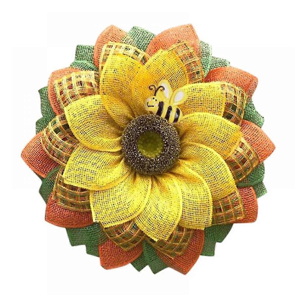 Pretty Comy Sunflower Bee Wreath, Yellow, Round, Artificial Wreath for Home Decor