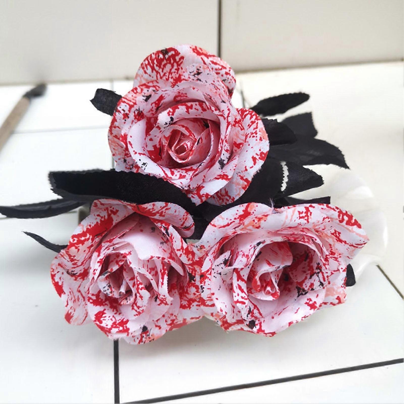 SUSUchens 2Pcs Halloween Artificial Flower Decoration Realistic Blood Rose Bouquet Fake Flowers for Ghost Festivals Parties Home Decor Pink