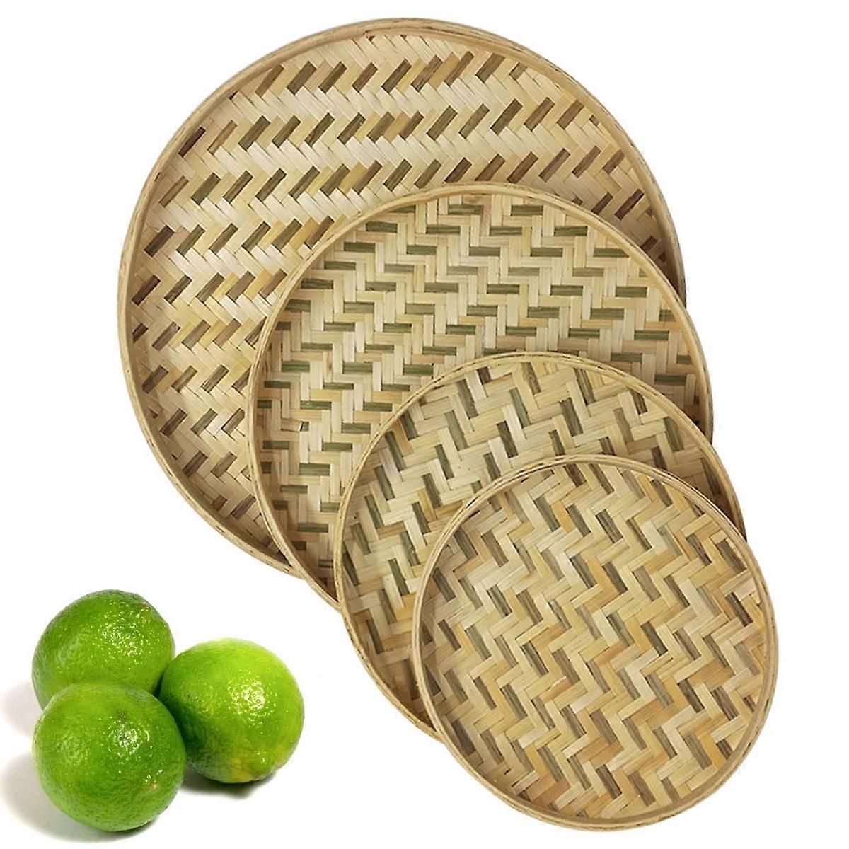 Woven Bamboo Flat Tray for Fruit Basket, Snack Holder, Food Container, Kitchen Table Decor, Compatible with AURORA TRADE