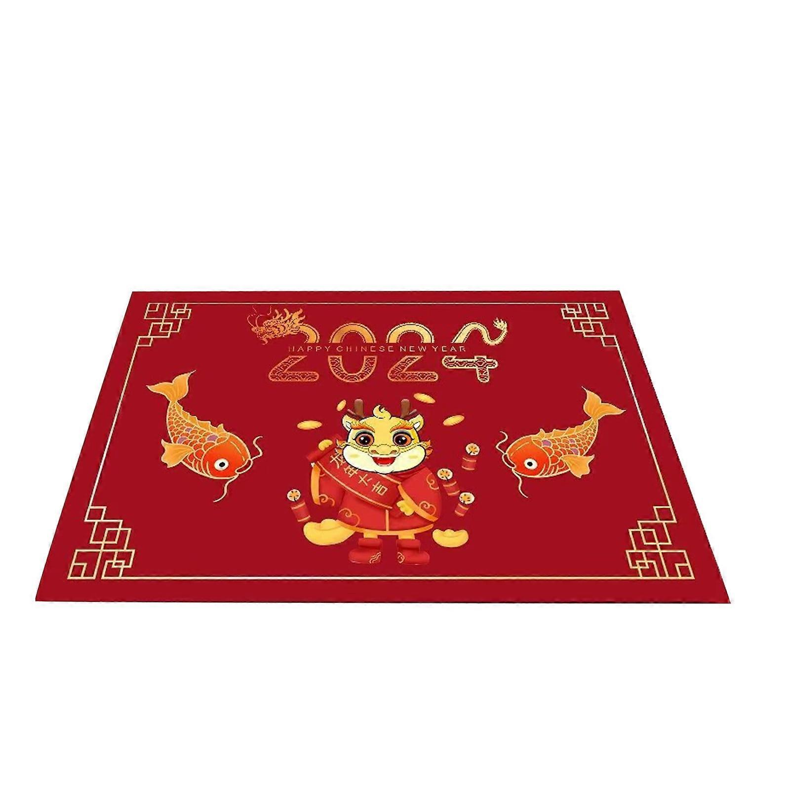 Happy New Year Dragon Door Mat 2024, Indoor/Outdoor Welcome Rug for Entrance, Holiday Home Carpet