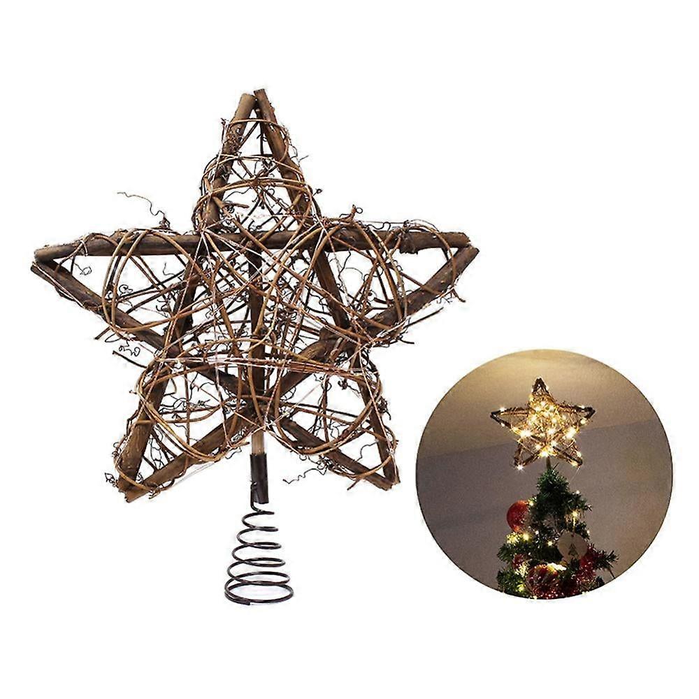 KARLSITEK Twinkle Star Christmas Star Tree Topper, Rustic Rattan Treetop with 15 LED Lights Christmas Tree Holiday Xmas Party Decorations, 12.2 Inch