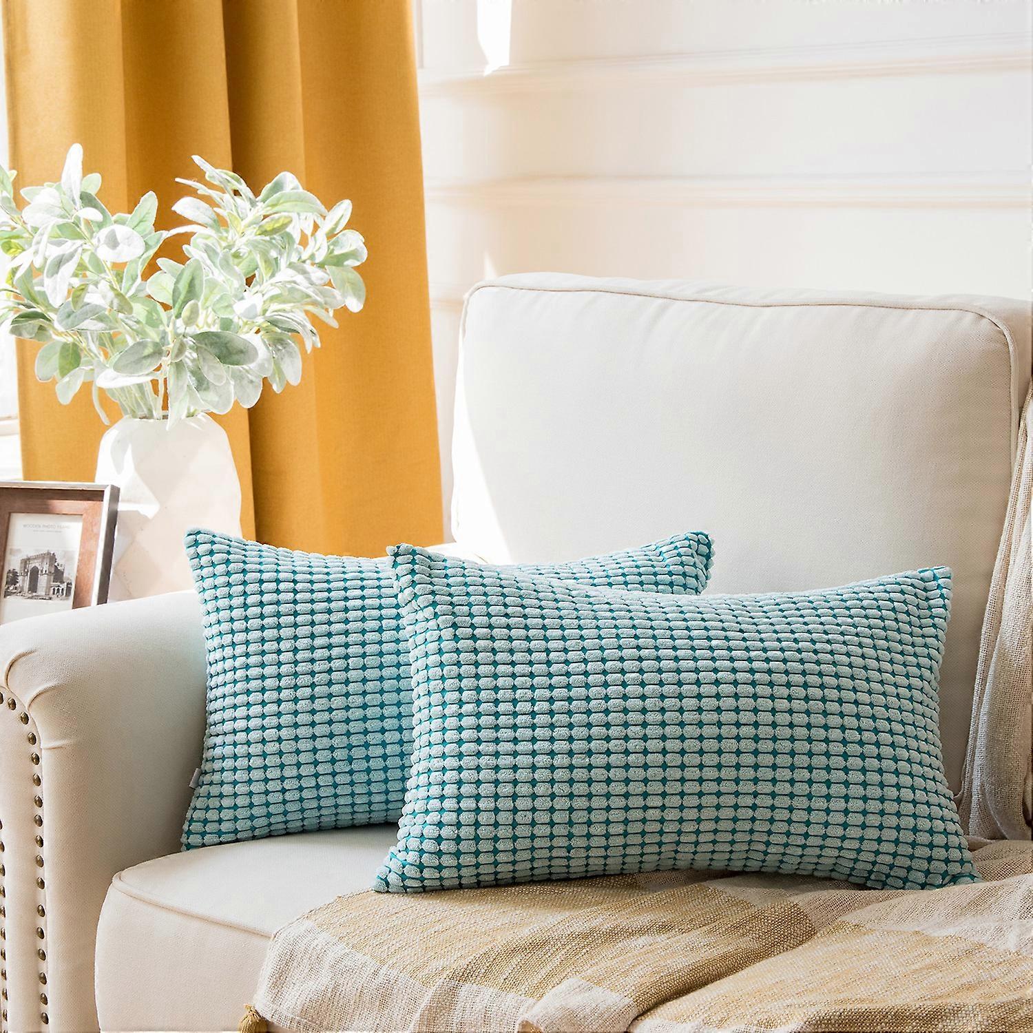 Phantoscope Soft Corduroy Corn Striped Velvet Series Decorative Throw Pillow Covers for Sofa Couch, 12" x 20", Water Blue, 2 Pack
