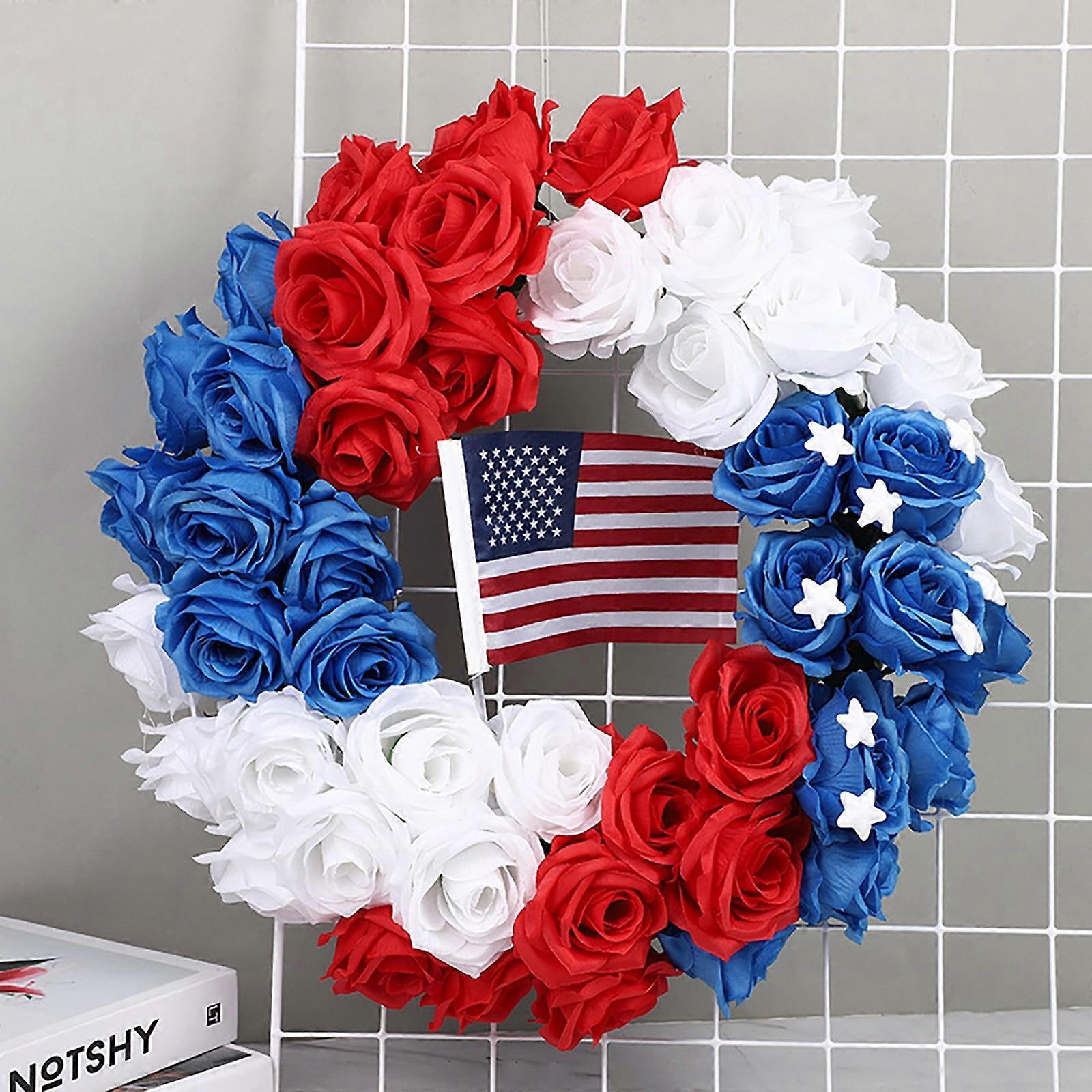 karymi 4th of July Decorations, US Flag Star Wreath, Red White Rose Window Decoration, Independence Day Party Favors