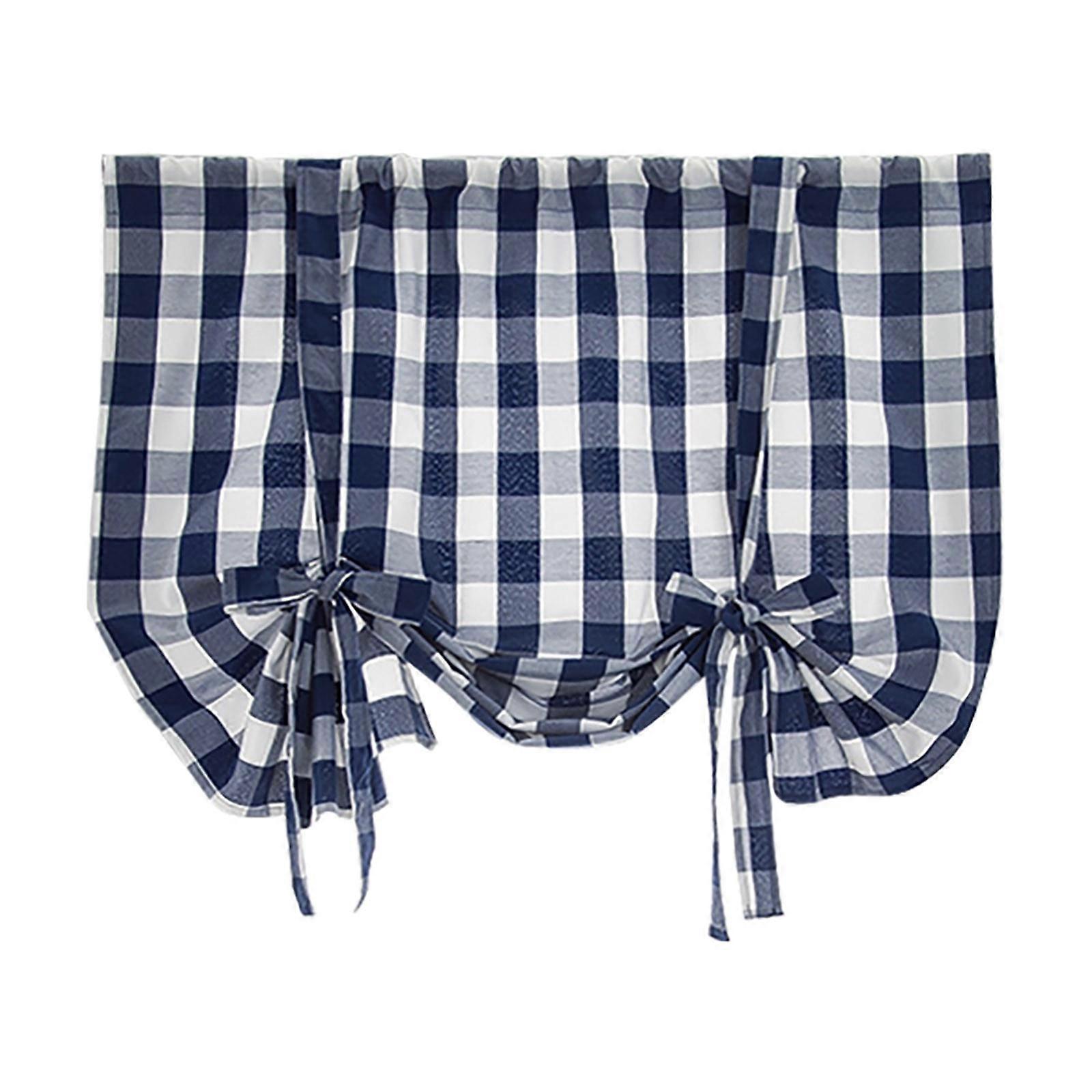 Blackout Curtains 32x55 Inch, Check Lace Up Window Curtain with Rod Pocket, Translucent Filter for Kitchen, Bedroom, Living Room - 1 Panel