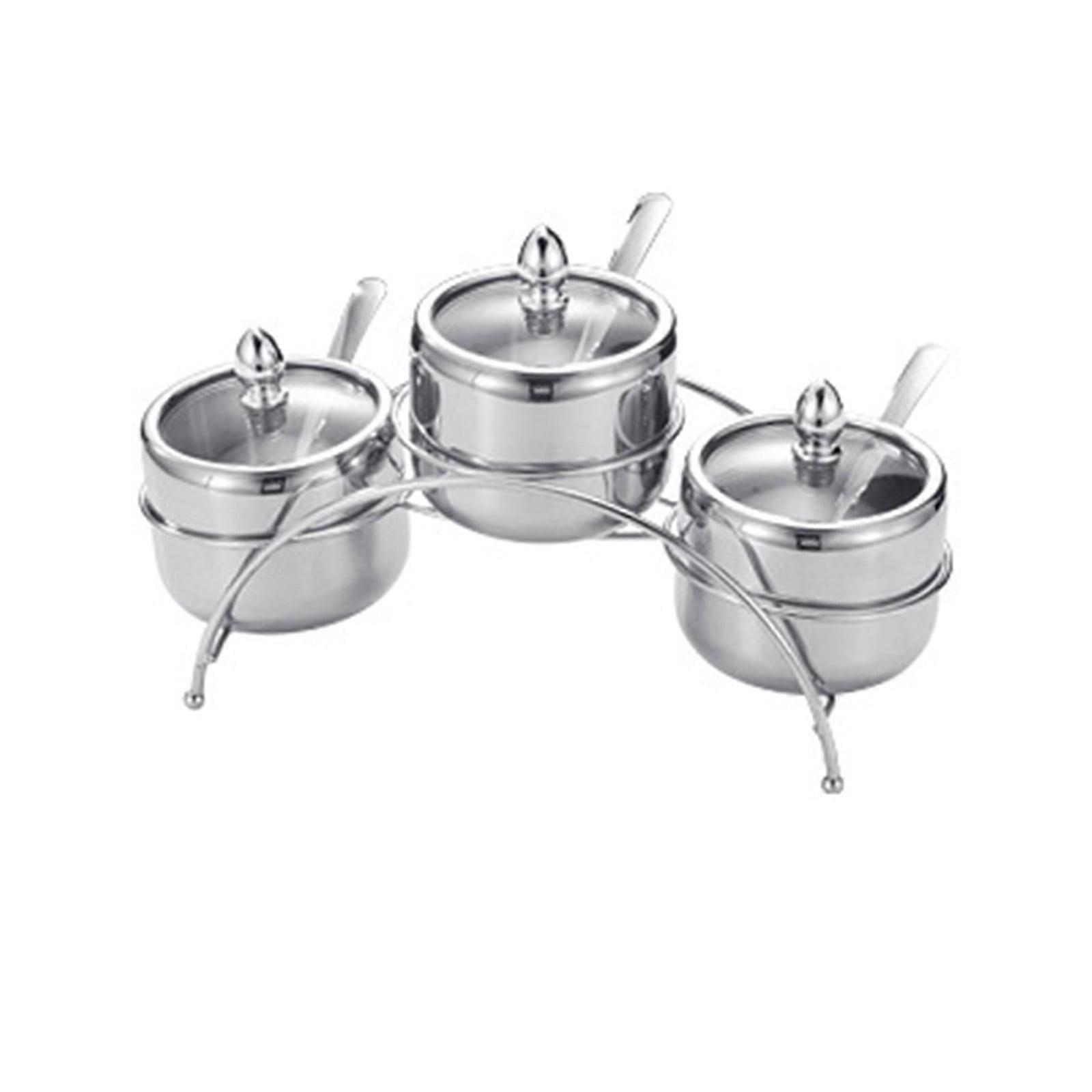304 Stainless Steel Seasoning Jar Set, Visible Kitchen Spice Jars with Spoons, Bridge Type Salt Sugar Bottles, compatible with magnetic holders