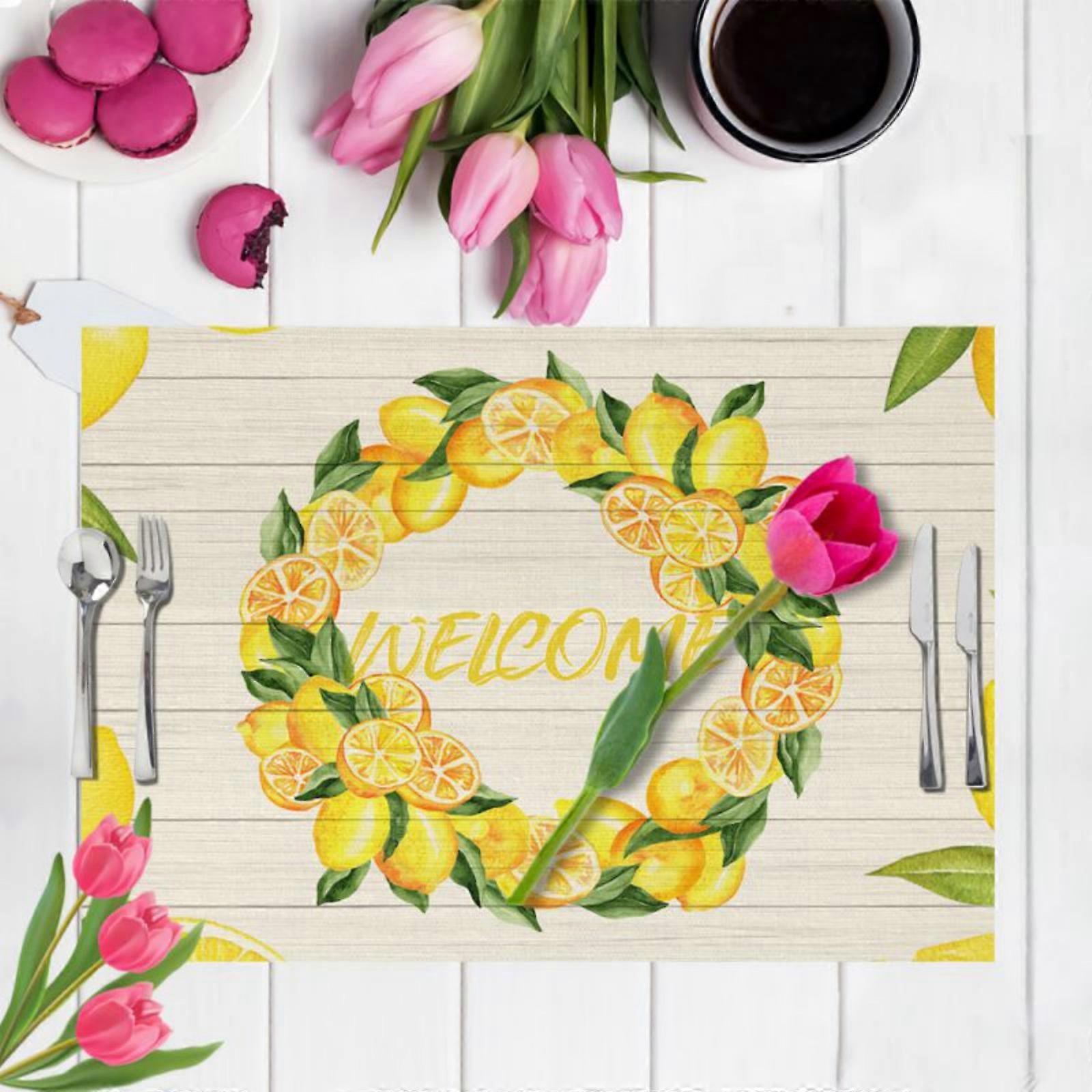 Lemons Leaves Summer Placemats, 12.6x16.5 Inch Tabletop Accessories Decor Seasonal Table Mats for Party Kitchen Dining Decoration