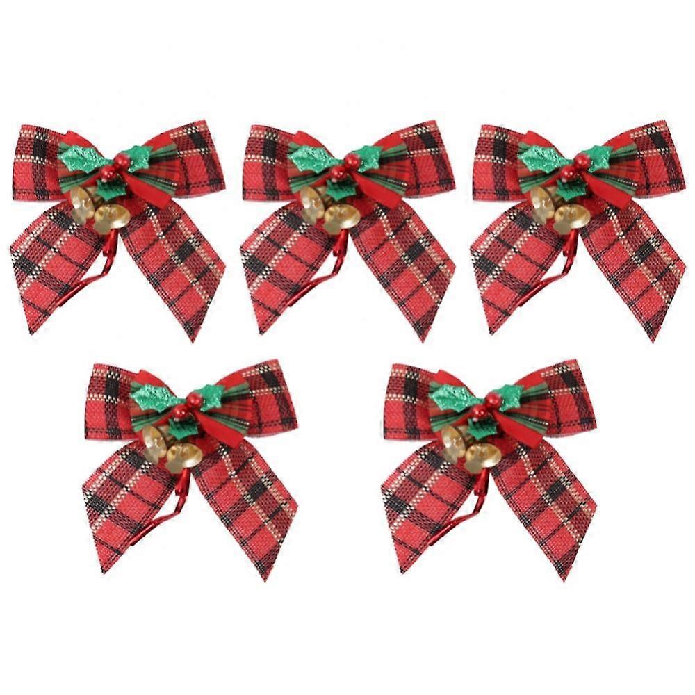 5Pcs Christmas Bow with Bells Christmas Tree Hanging Wreath Decorations Mini Bowknot Craft Gift Ornament Christmas Festival Decoration Supplies