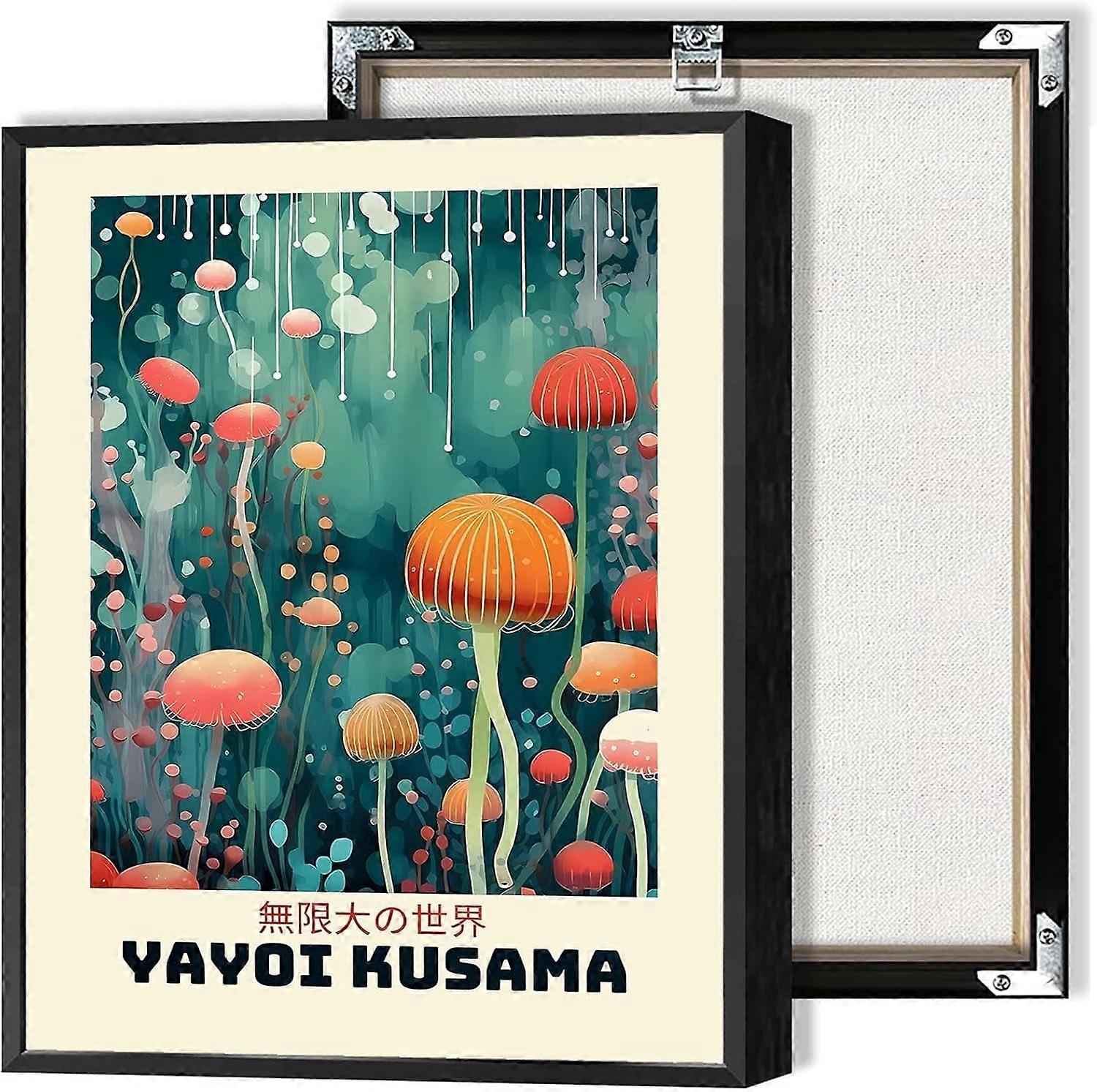 AEFER Retro Canvas Yayoi Kusama Poster, Kusama-Inspired Green Abstract Painting, Modern Japanese Wall Art, Gallery Exhibition Decor, Home Wall Decor