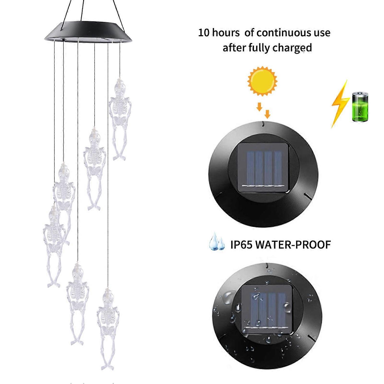 Leaveforme Halloween Decorative Light Solar Skull Wind Chime Lamp Halloween Party Hanging Decoration Wind Chime Light