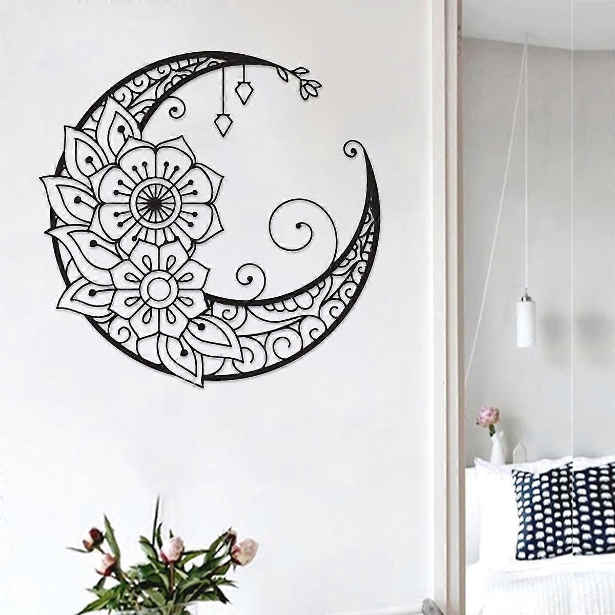 Nyidpsz Rose Flower Moon Wall Decor 30CM Metal Wall Hanging Sign Unique Mandala Flower Moon Wall Sign Durable Wall Arts Pendant